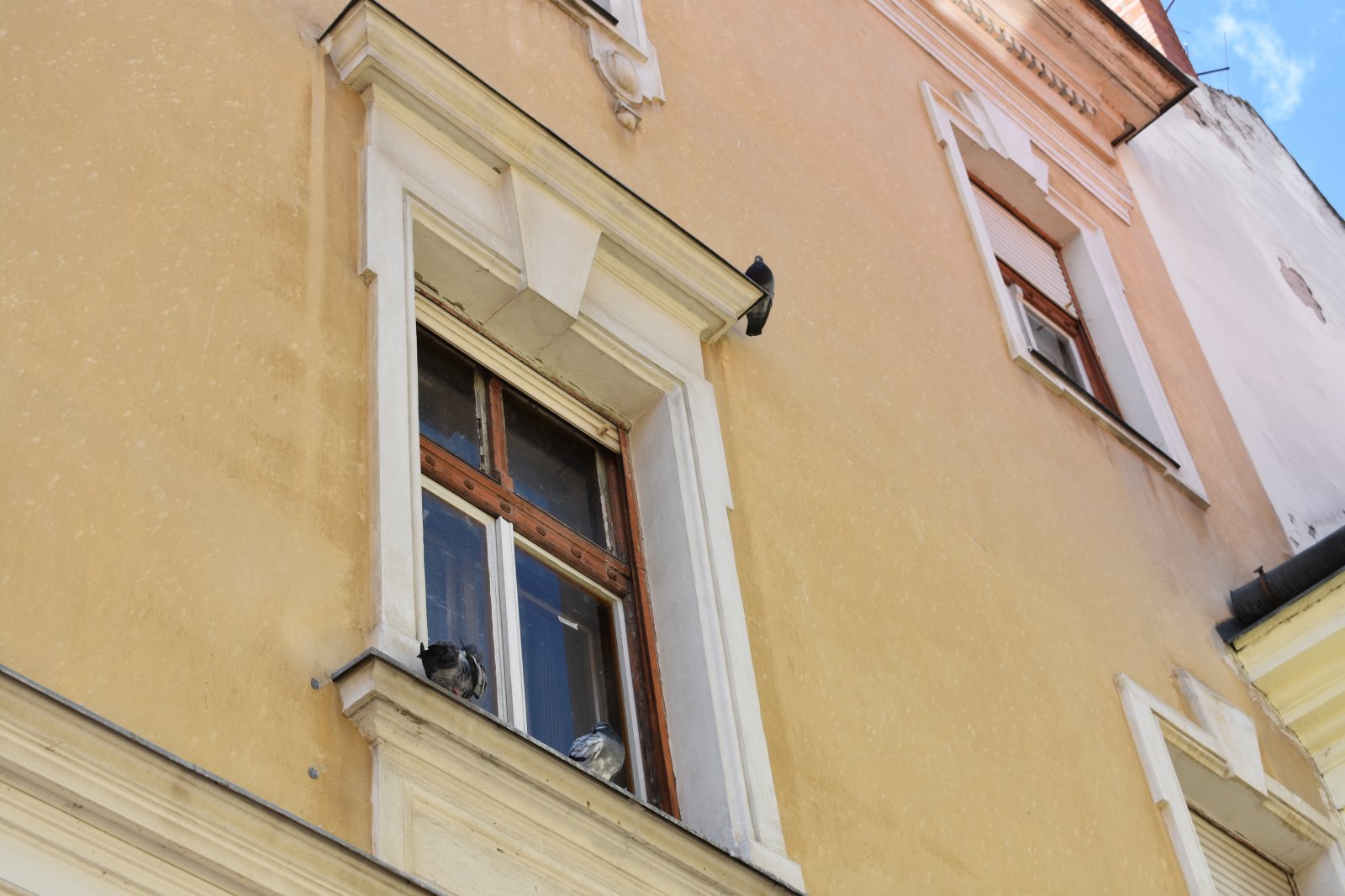 Információink szerint a galambmentesítés most csak az önkormányzati tulajdonban lévő épületre terjed ki, vagyis a Budapest Bank és a Raiffeisen Bank közötti házra, továbbá a Raiffeisen Bank feliratára és cégérére.