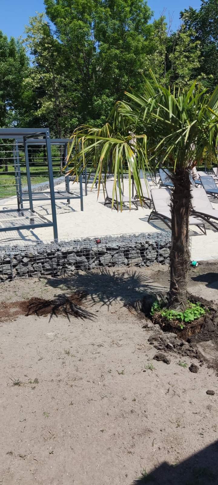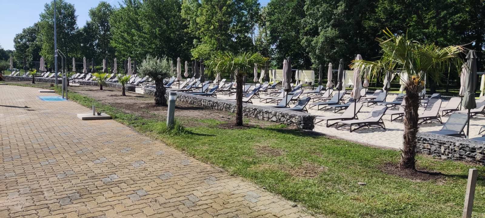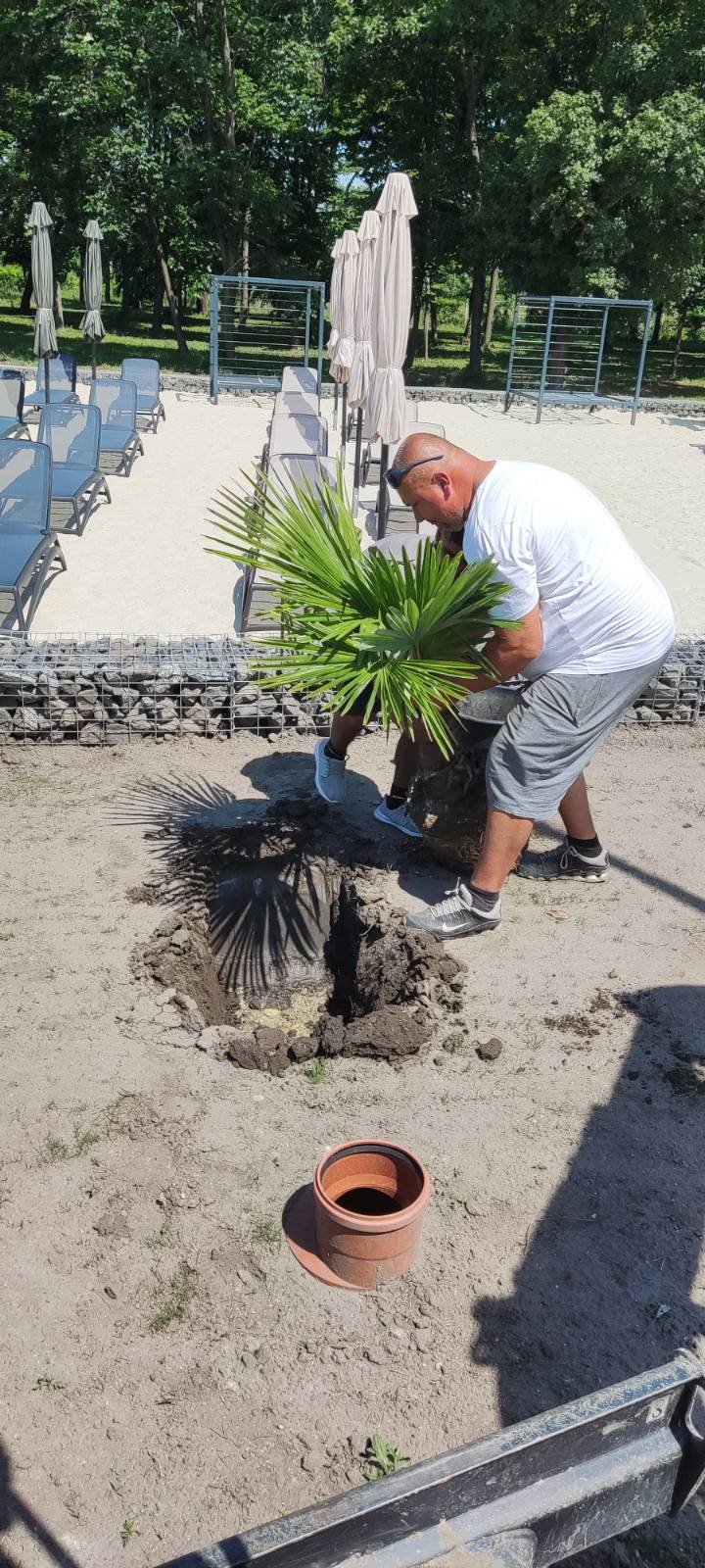 A nyugágyak, napernyők és baldachinos ágyak már a helyükre kerültek, tegnap pedig megérkeztek a növények is, amelyeket ma be is ültettek a fürdő munkatársai.