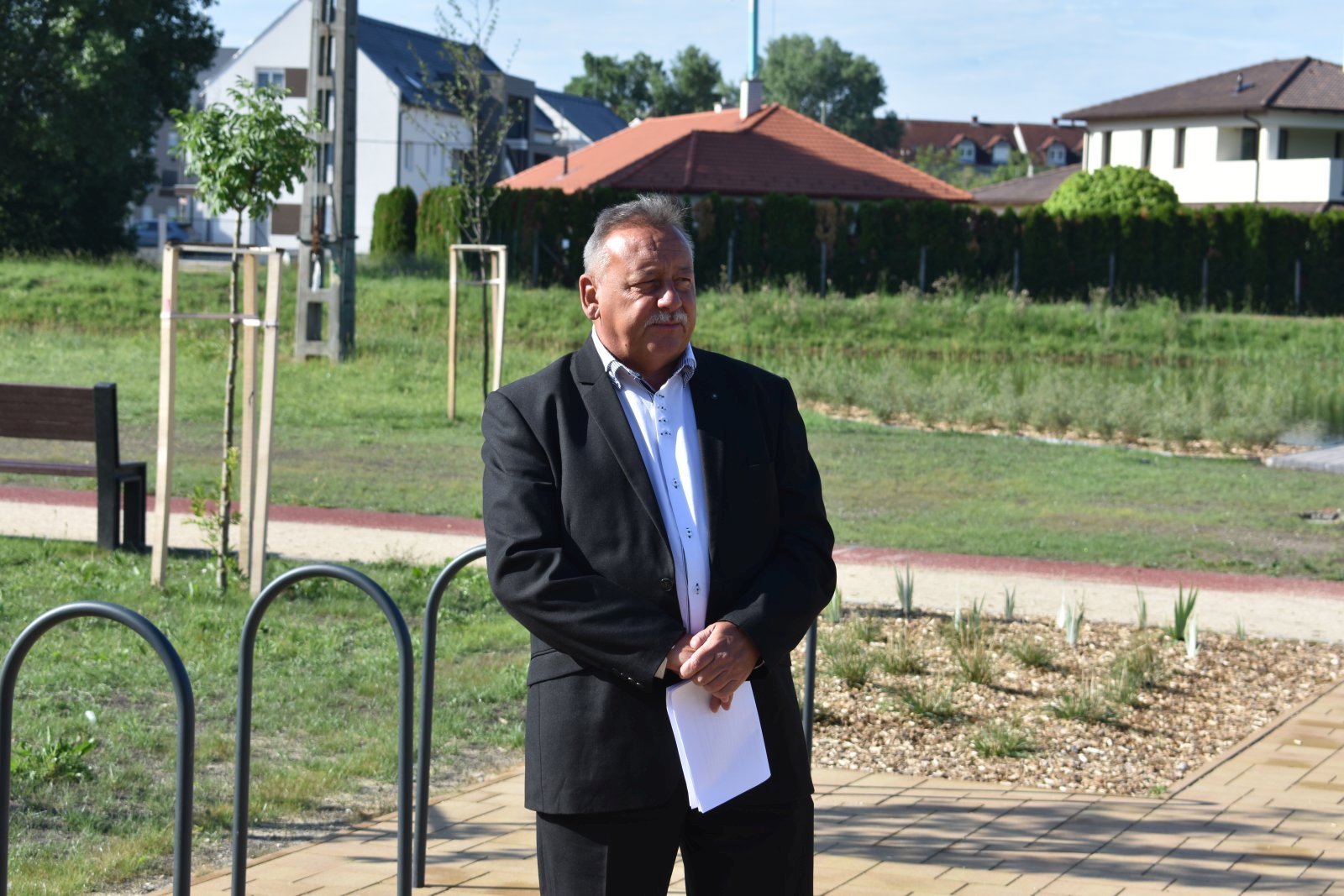 Dr. Kovács Zoltán országgyűlési képviselő gratulált a beruházáshoz, emlékeztetett arra, hogy kevés olyan település van, amelyik ennyi zöldfelülettel rendelkezik, mint Pápa városa, az önkormányzat pedig jó célokat tűzött ki és hajtott végre ezek fejlesztésére. A külső-várkerti szabadidőpark a legújabb jó példa.