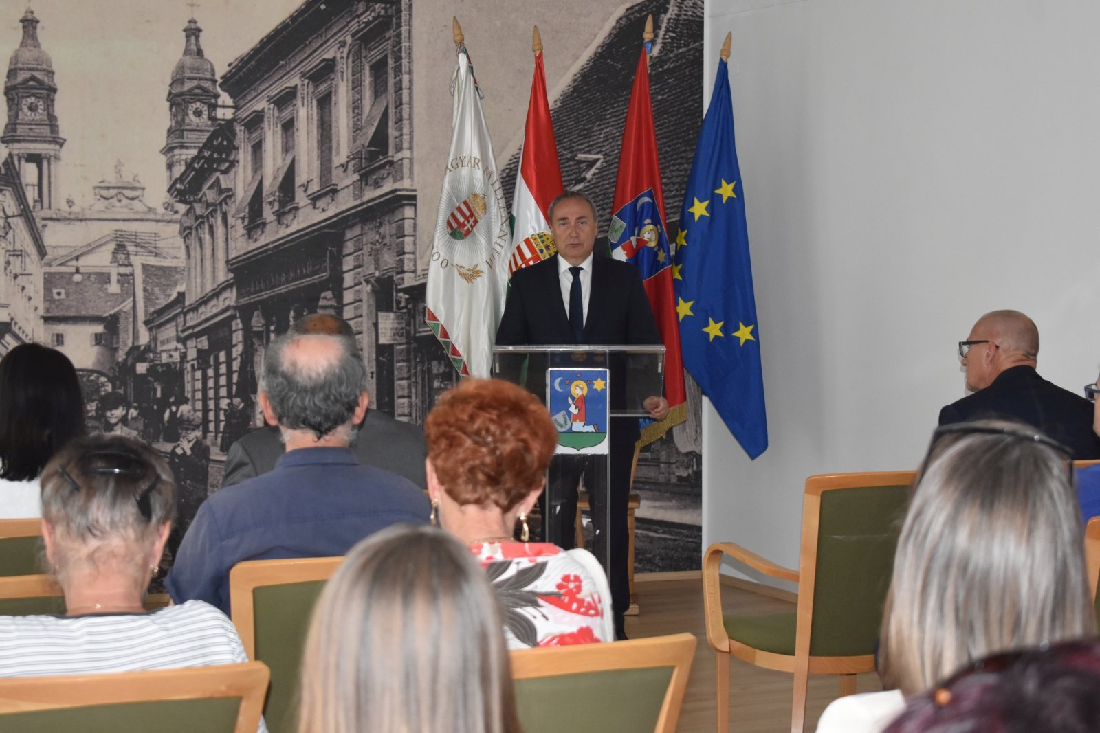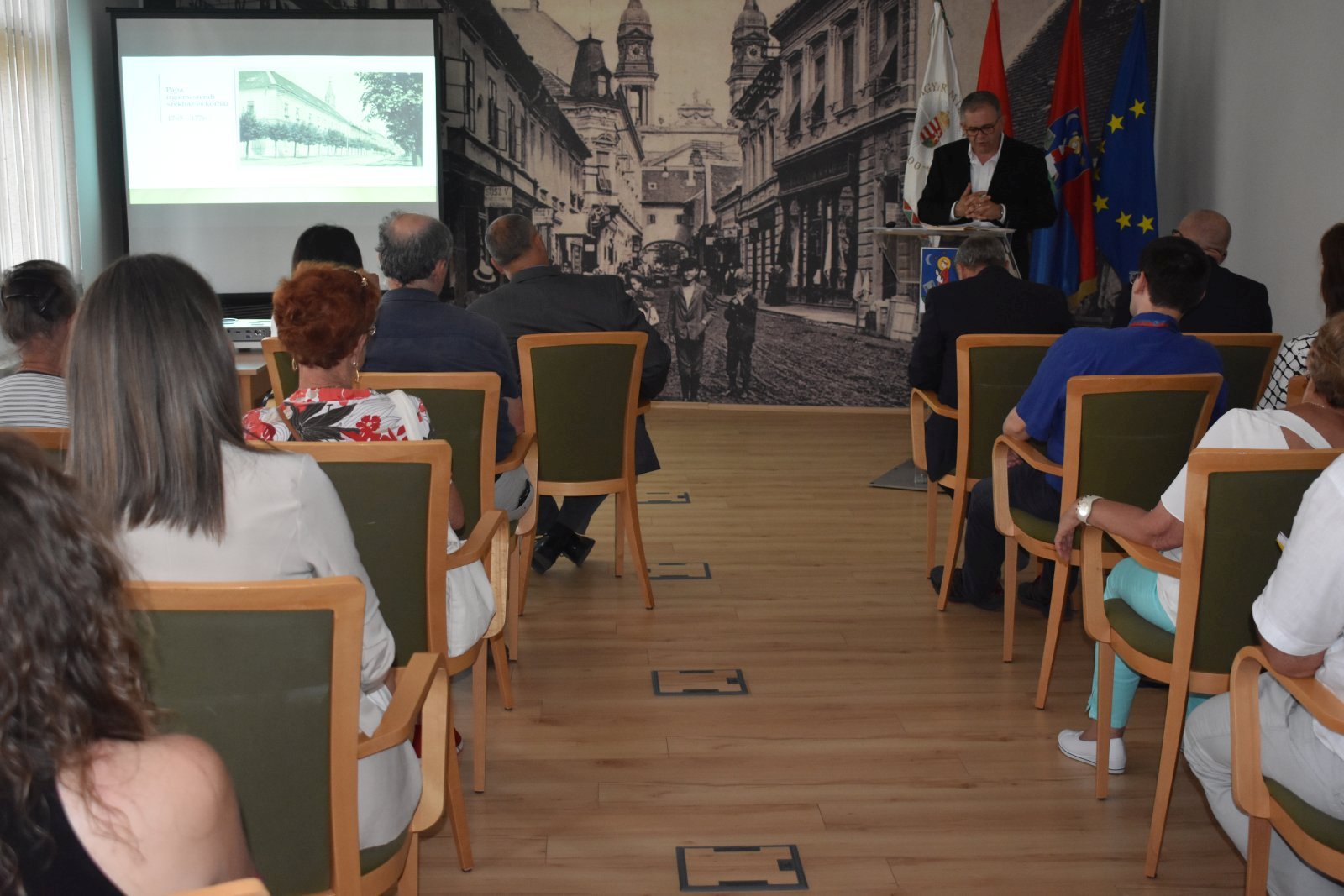 A rendezvény a Fellner-emlékév jegyében folytatódott a Városházán, itt dr. Kovács Zoltán országgyűlési képviselő köszöntötte a résztvevőket, felidézve Pápa Város Napja történetét, majd Mezei Zsolt történetkutató ismertette Fellner Jakab építész életét és pápai munkásságát. Városunkban négy épület fűződik a híres építész nevéhez: a kórház régi épülete, a Nagytemplom, az Esterházy-kastély és a Jókai utcai Mikovinyi-ház.