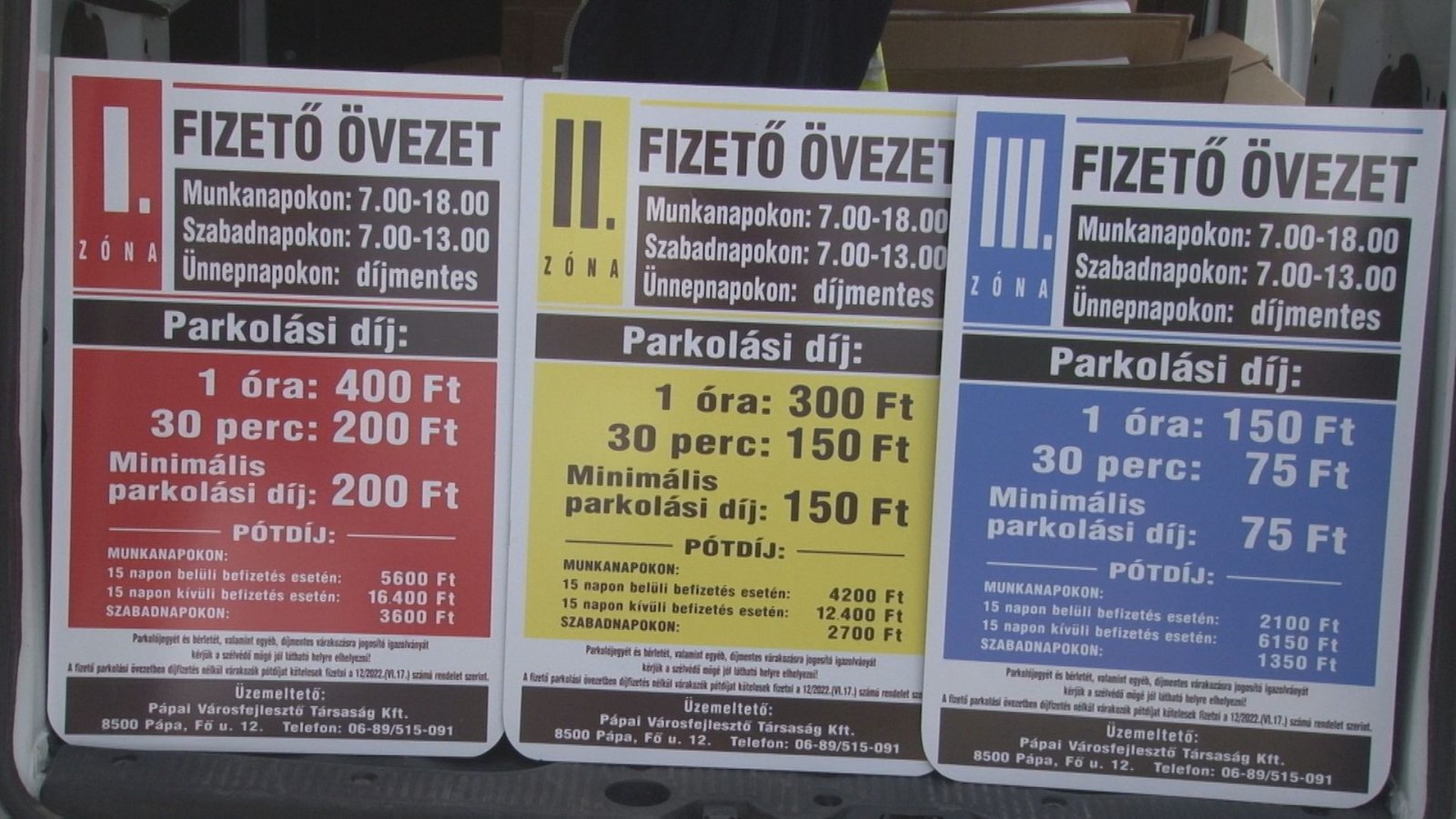 Közel kétszáz közlekedési tábla fogja jelezni a belvárosban a fizetőparkolási zóna határait és az egyes övezeteket, ezek felszerelését már a héten megkezdték a Pápai Városfejlesztő Társaság Kft. munkatársai. Egyelőre a parkolási zóna elejét és végét jelző táblák kerültek fel az oszlopokra, ezekből nyolcvannál többet helyeztek ki, de már telepítették az egyes fizetős övezetek határaira figyelmeztető táblákat is, hatvan ilyen került ki a közterületekre. A táblákat fekete fóliával letakarták, hiszen a fizetőparkolást szabályozó új rendelet majd csak szeptember 1-jén lép hatályba.