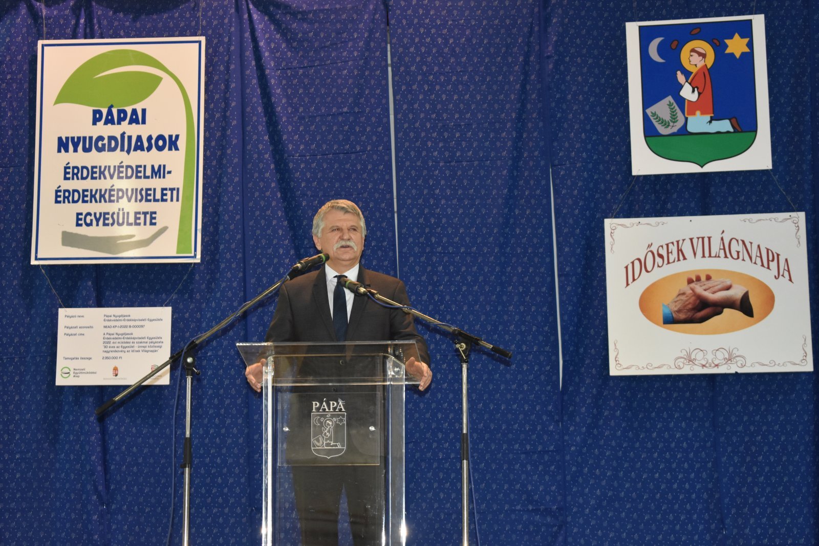 - A mai világban az, hogy egy egyesület ilyen hosszú időn keresztül fenn tud maradni, prosperálni, hogy ilyen életerővel van tele és azzal az életbölcsességgel rendelkezik, amivel a szépkorúak közössége, az nagyon tiszteletreméltó teljesítmény. Kevés település büszkélkedhet ilyen nagy létszámú, összetartó, színes egyesülettel, mint Pápa - fogalmazott. A házelnök jó egészséget kívánt az időseknek, és arra kérte őket, hogy adják tovább élettapasztalataikat gyermekeiknek, unokáiknak és őrizzék meg derűjüket a nehéz időkben is. Beszédében arról is szólt, hogy a kormány továbbra is meg akarja őrizni a nyugdíjak vásárlóértékét.