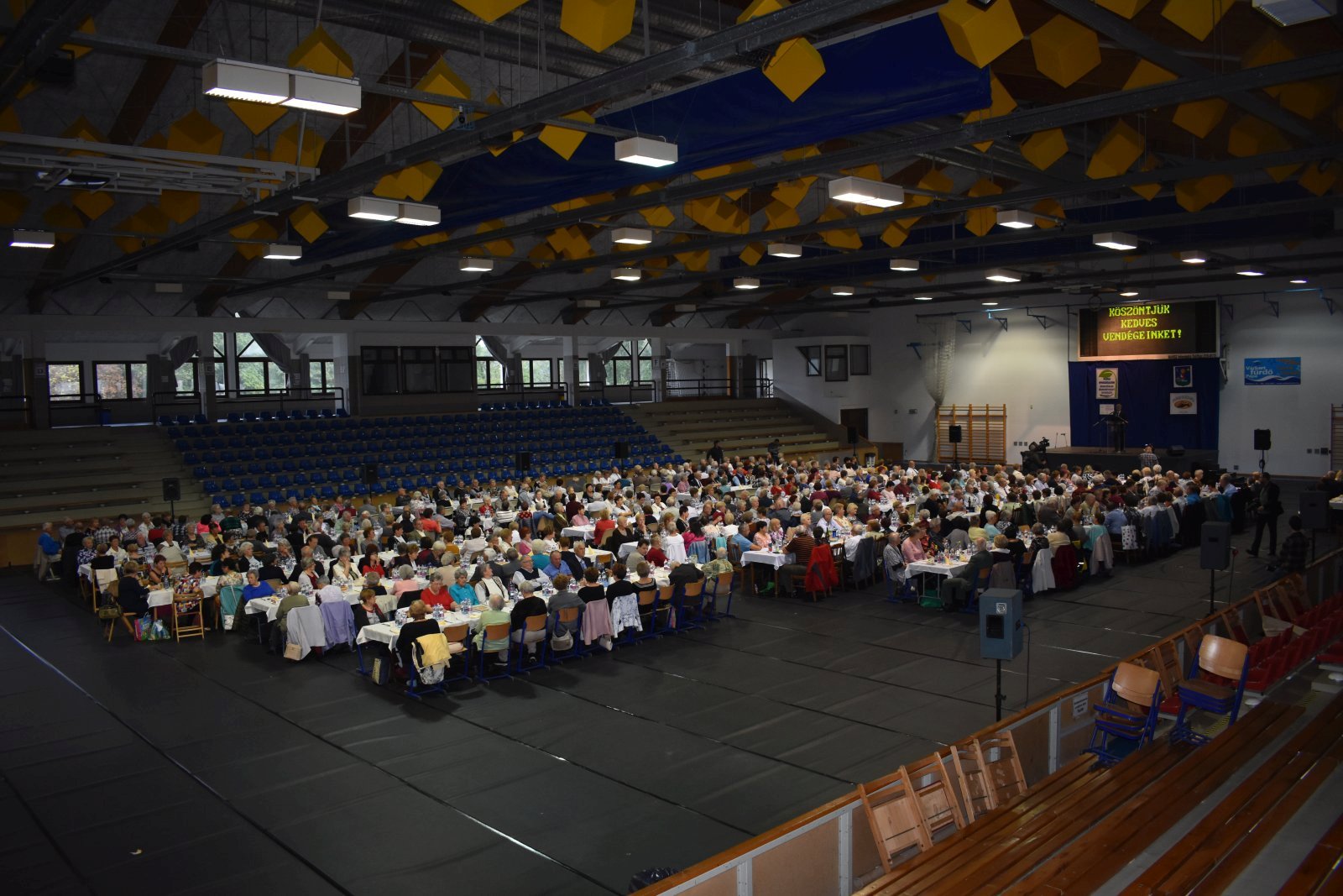 Az ünnepi szavakat közösen elfogyasztott ebéd, majd színes műsor követte, melyen többek között fellépett a Pápai Musical Stúdió, a Vadvirág Néptánccsoport és a nyugdíjas-egyesület irodalmi köre és énekkara is.