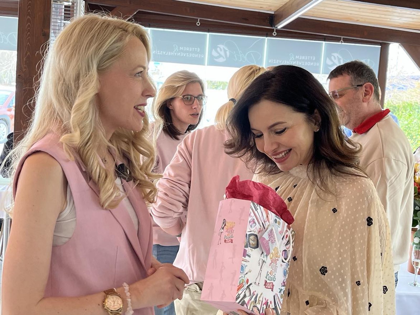 A rajongók további apróbb ajándékokkal, rajzzal, egyedi készítésű fényképalbumokkal, s persze virággal lepték meg Zsédát, majd a közös ebéd után délutánba nyúl a beszélgetés, emlékek felidézése a jó hangulatú találkozón.