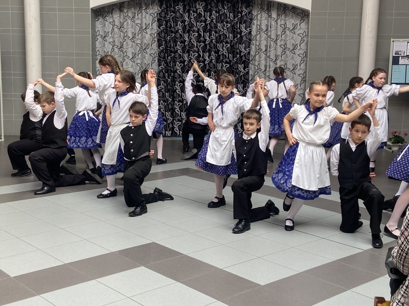 A köszöntők után Gőgös Ada a Petőfi Gimnázium diákja örvendeztette meg a közönséget egy sváb dalcsokorral, majd pedig a Munkácsy Mihály Német Nemzetiségi Általános Iskola fiataljai töltötték meg jókedvvel az aulát, énekes-táncos podukciójukkal.