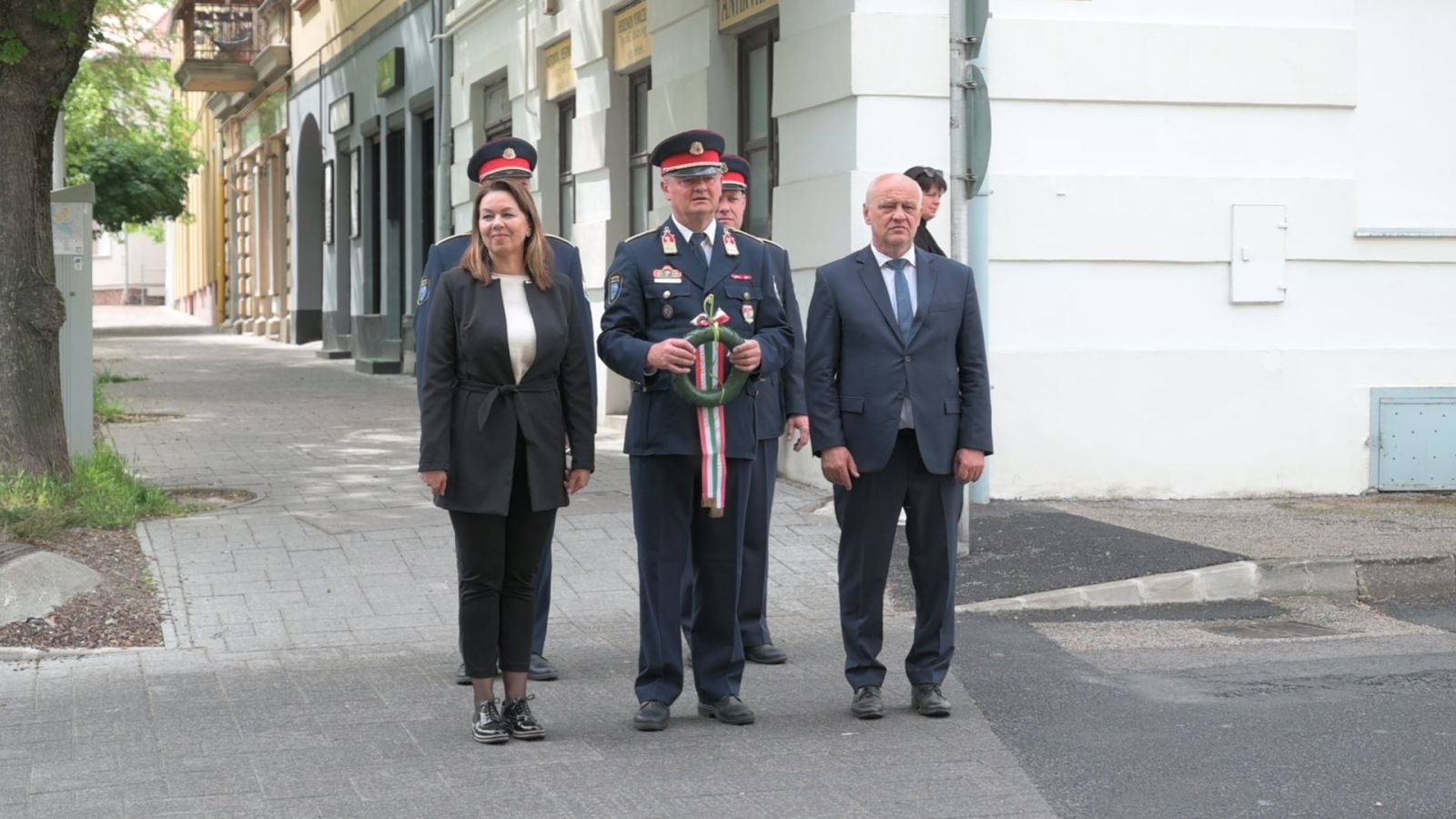 Grőber Attila polgármester, Vadász Krisztina alpolgármester, Horváth Sándor tűzoltó alezredes, pápai tűzoltóparancsnok, Kovács Ottó tűzoltó alezredes, pápai kirendeltségvezető és a helyi állomány több tagja is részt vett a ma délelőtti koszorúzáson.