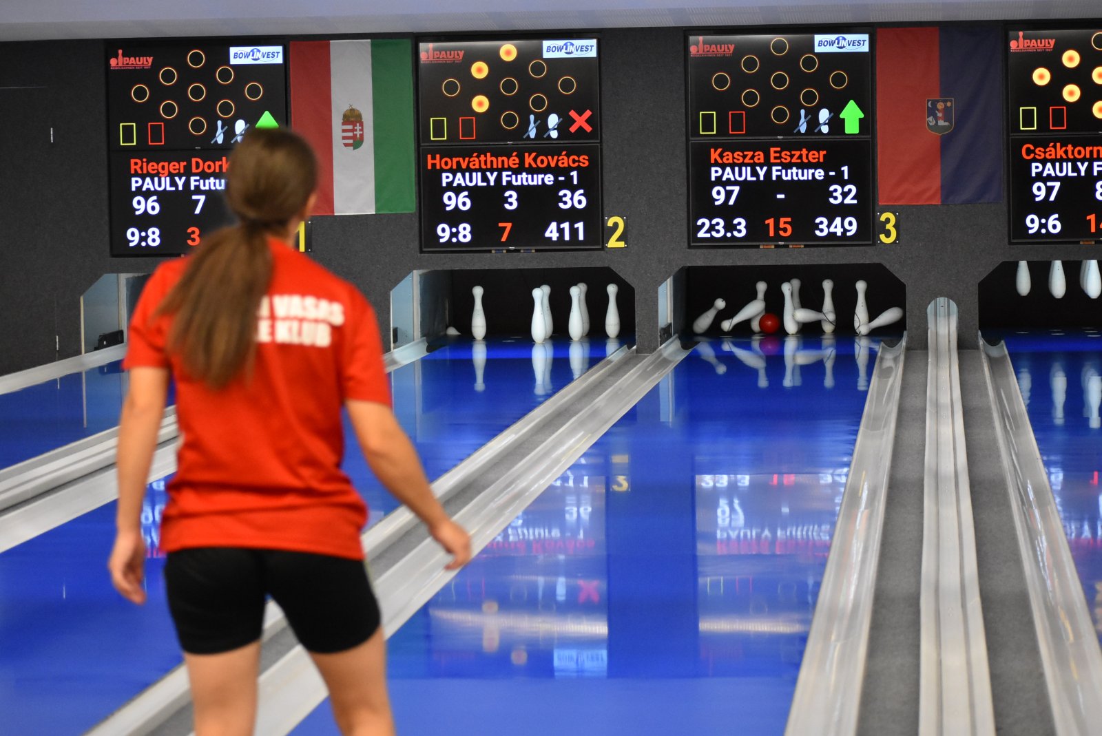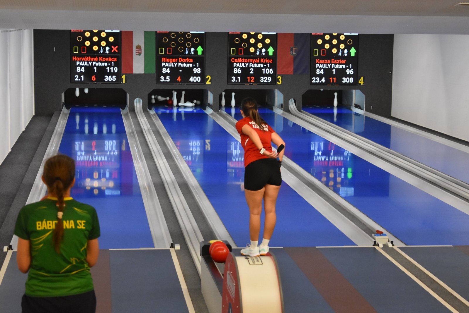 Pápai Vasas TK - Bábolna SE 5-3 (3034-3025)A Győr és a Ferencváros elleni vereség után a pápai hölgyek arra készültek, hogy hazai pályán végre megtörik az átkot és megszerezik első győzelmüket az idei kiírásban. A Bábolna ellen Grabecz Hanna egy szoros vereséggel, Kaphegyi Eszter egy két fás sikerrel kezdett. A középső sorban mindkét alakulat 1-1 pontot gyűjtött, ahogy az utolsó pároknál is, így a két pontról a több összfa döntött. Ebben a mutatóban a hazaiak voltak jobbak, a pápaiak 9 fával többet szereztek, így sikerült otthon tartani a pontokat.Pápai eredmények: Grabecz 493, Kaphegyi 504, Rozmánné (Kasza) 443, Rieger 575, Sziklásiné 529, Vass 490.