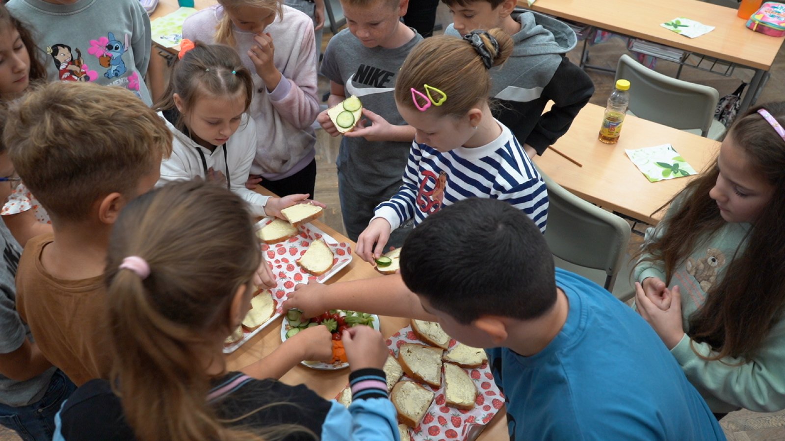 Az egészséges reggeli elkészítésében a diákok is aktív szerepet kaptak. A gyerekek maguk díszíthették a margarinos kenyeret friss zöldségekkel, készíthettek gyümölcssalátát almából, szőlőből, körtéből és banánból, kóstolhattak müzlit tejjel vagy gyümölccsel, mellé pedig mézes-citromos gyümölcsteát kortyolhattak. A szervezők célja az volt, hogy a gyerekek saját élményen keresztül fedezzék fel: az egészséges reggeli nemcsak tápláló, hanem finom és változatos is lehet.