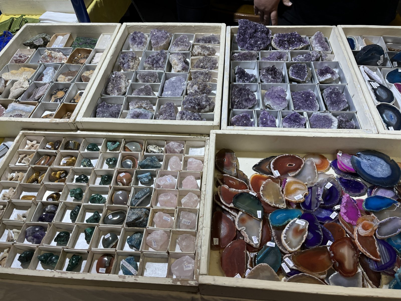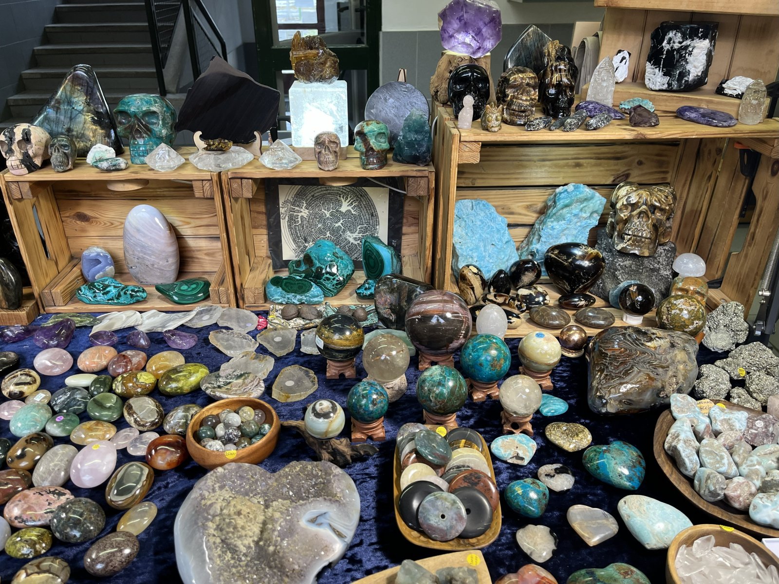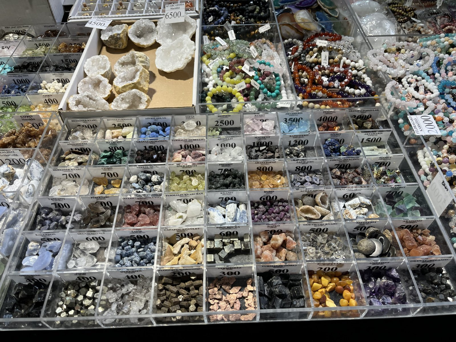 A gyönyörű színek megjelentek a sokféle ékszeren is, amik jellemzően ásványokból készültek, gazdag kínálatot találtak az érdeklődők medálokból, nyakláncokból, karkötőkből, de különféle csiszolt, formázott dísztárgyból, figurából is válogathattak.