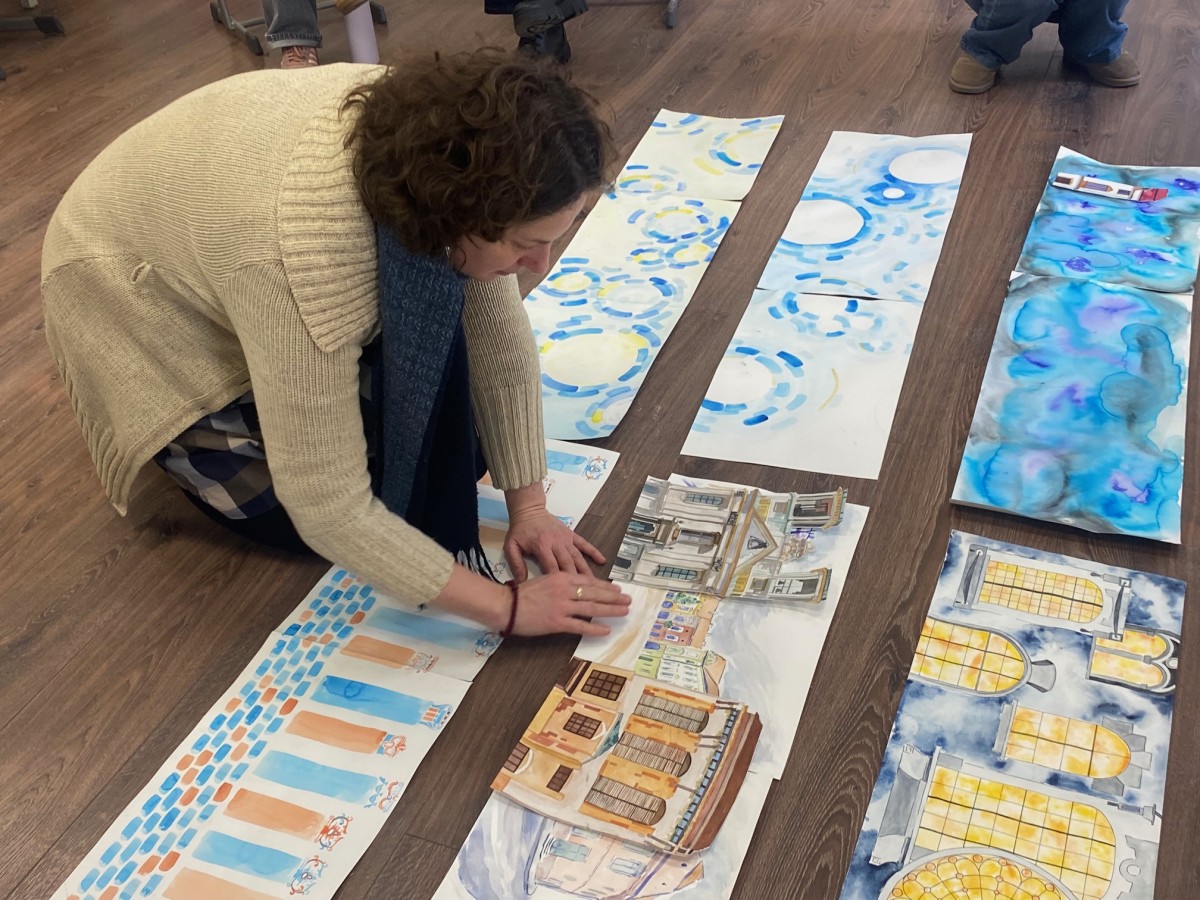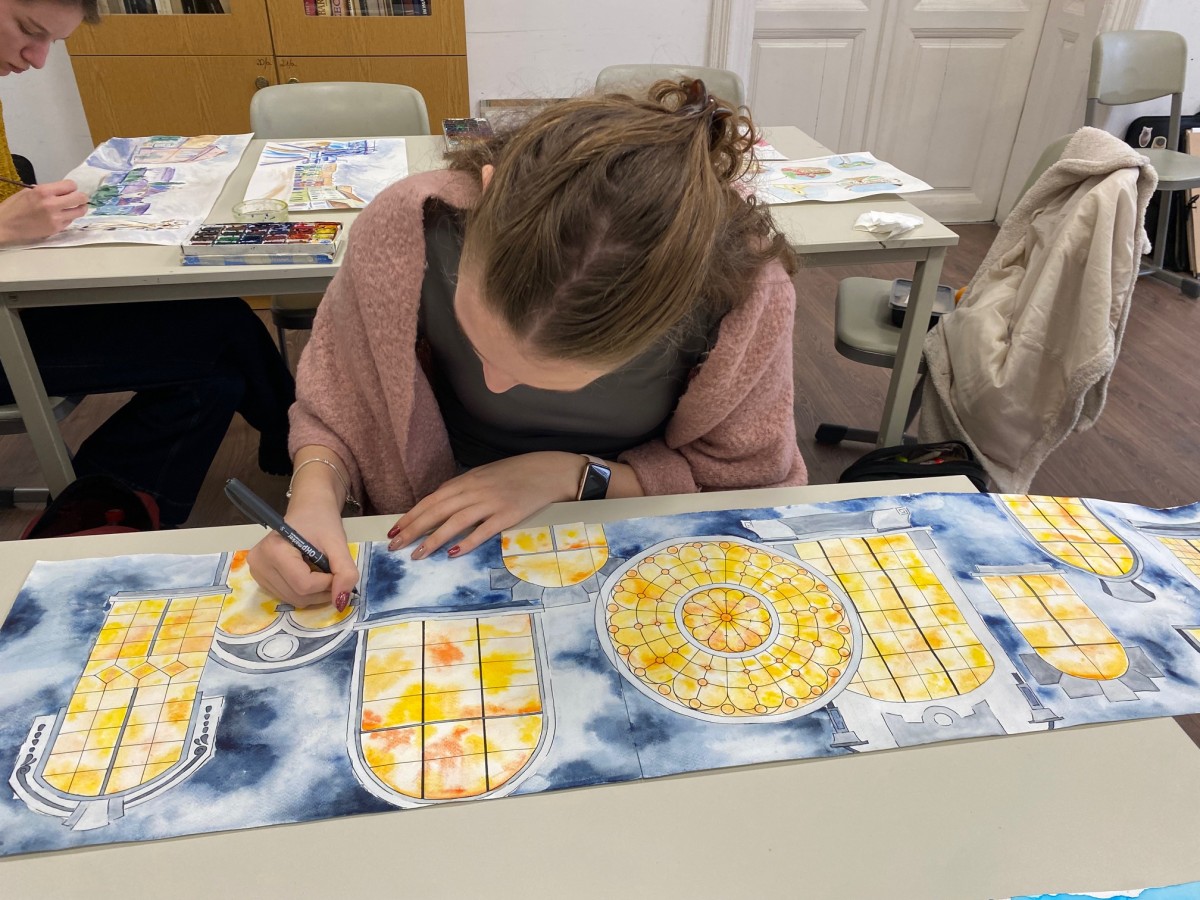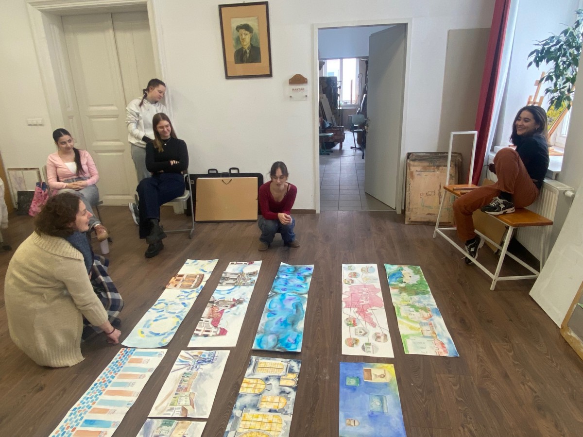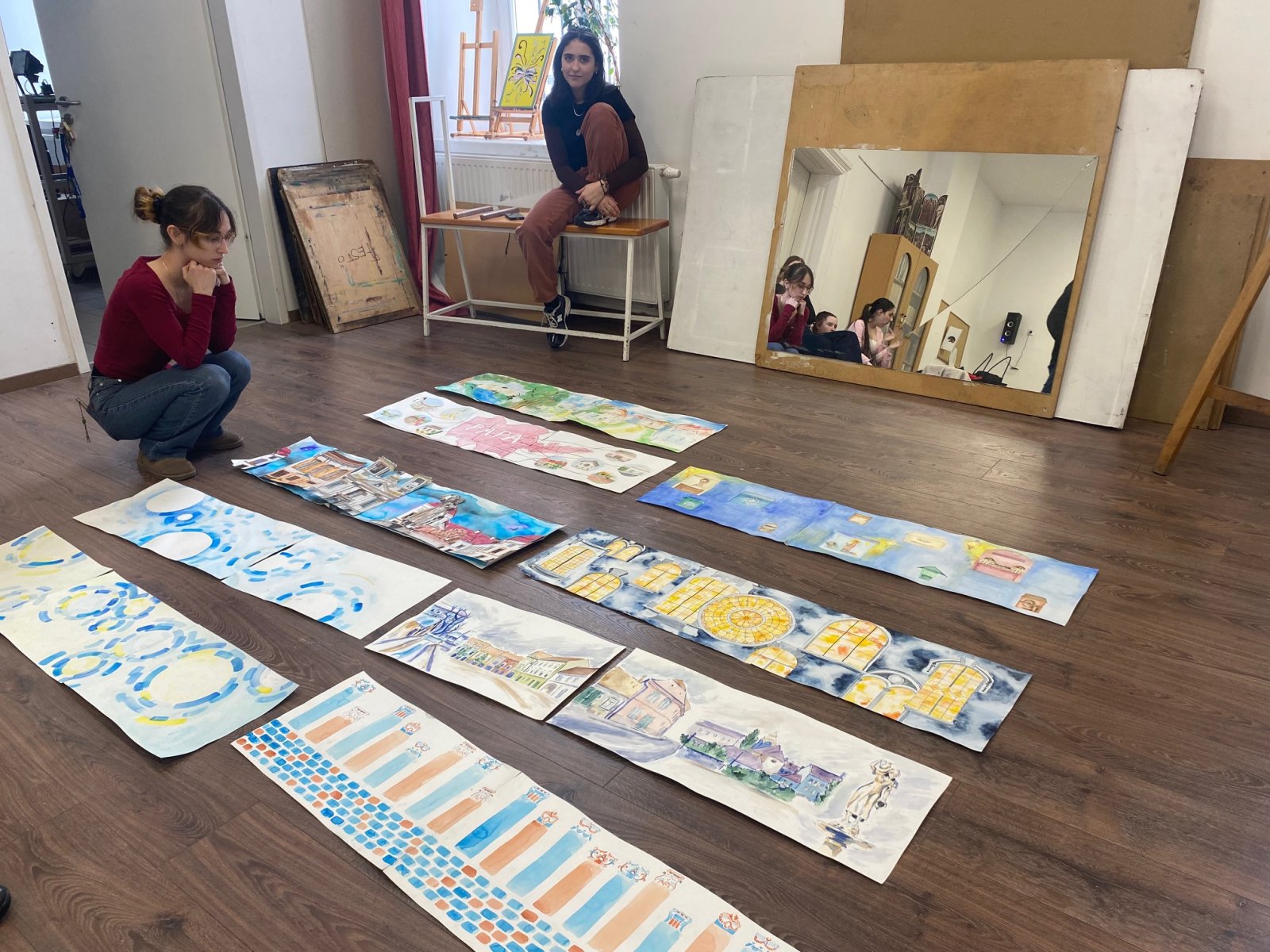 A tervezési folyamat a 12. évfolyamos festő diákok bevonásával kezdődött. A munka első lépéseként stúdiólátogatáson vettek részt, ahol testközelből ismerhették meg azt a teret, ahová majd az elkészült alkotások kerülnek. A téli szünetben már ceruzák és vázlatlapok kerültek elő: a tanulók méretarányos terveken gondolkodtak formákról, színekről és városi motívumokról. Jelenleg ezeknek a vázlatoknak az értékelése zajlik, hogy kiválaszthassák azokat az alapokat, amelyekből tovább épülhet a végleges látvány.