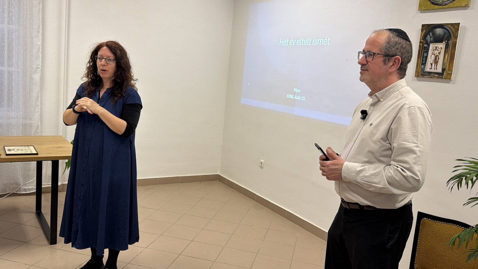 - Valójában azt, amit a Jóisten ránk bízott, hogy a Tóra törvényeit őrizzük, azt egyénileg, a maga tökéletességében vagy teljességben talán nem is tudjuk végrehajtani, hanem csak és kizárólag akkor, ha van körülöttünk egy bizalmi kör, ez a bizalmi kör, ez az adott zsidó közösség, és így a szónak bizonyos értelmében megosztjuk ezeket a terheket, és együttesen, közösségként, valamiféle egységet alkotva, szándékainkat tekintve, egységet alkotva tudjuk azt a feladatot teljesíteni, amivel a Jóisten megbízott minket, hogy őrizzük ezeket az előírásokat. - Darvas István főrabbi már nem először járt Pápán, ismeri a közösséget és Schmidt Orsolyát, és itt is kiemelte az egyén szerepét a közösség építésében.