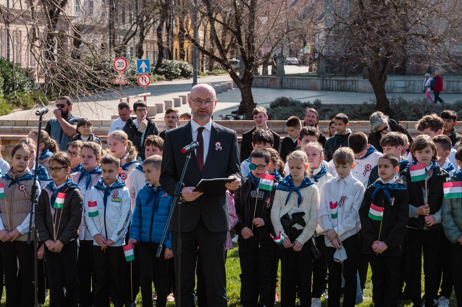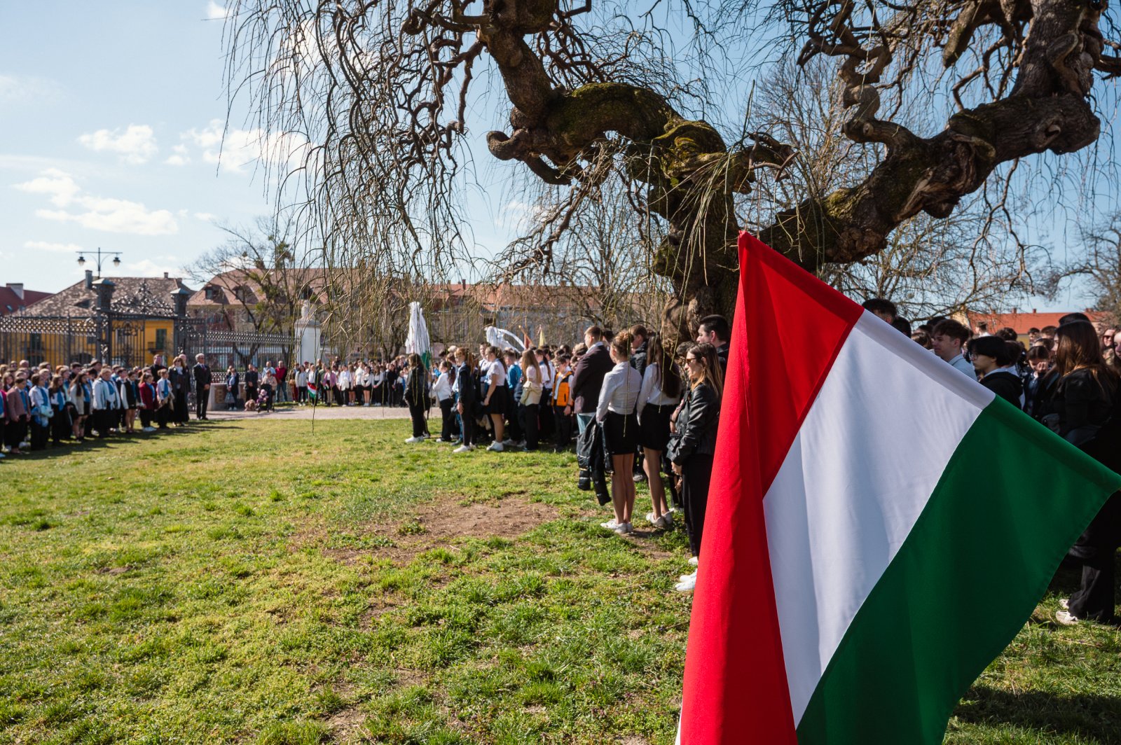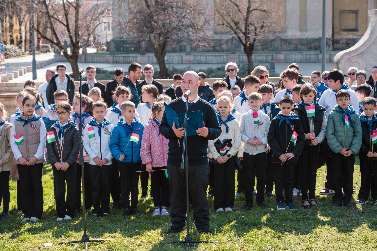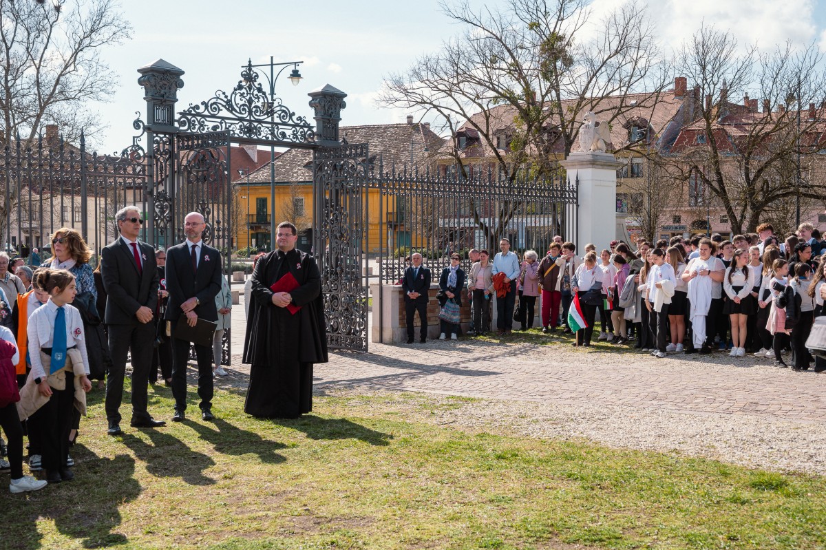 Közel ezerötszáz diák szavalta együtt a Nemzeti dalt pénteken délelőtt a Esterházy-kastély előtt álló Petőfi-szobornál. A közösségi eseményre pápai és Pápa környéki iskolák diákjai, valamint óvodások érkeztek, hogy megidézzék a forradalom szellemét. A rendezvényt Lampért Gábor kezdeményezte, aki tíz éve indította el ezt a hagyományt, amely mára a város egyik különleges márciusi eseményévé vált. Az idei jubileumi eseményen Cséry Gergő plébános köszöntötte a résztvevőket, míg Schilde René ünnepi beszédet mondott. A közös szavalást Schrei Balázs, a Szent István Római Katolikus Általános Iskola magyartanára vezette, és a rendezvényt a helyi iskolák kórusai is színesítették.