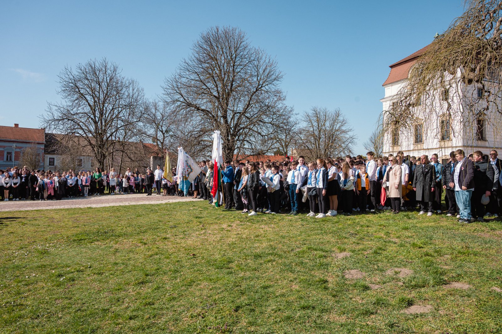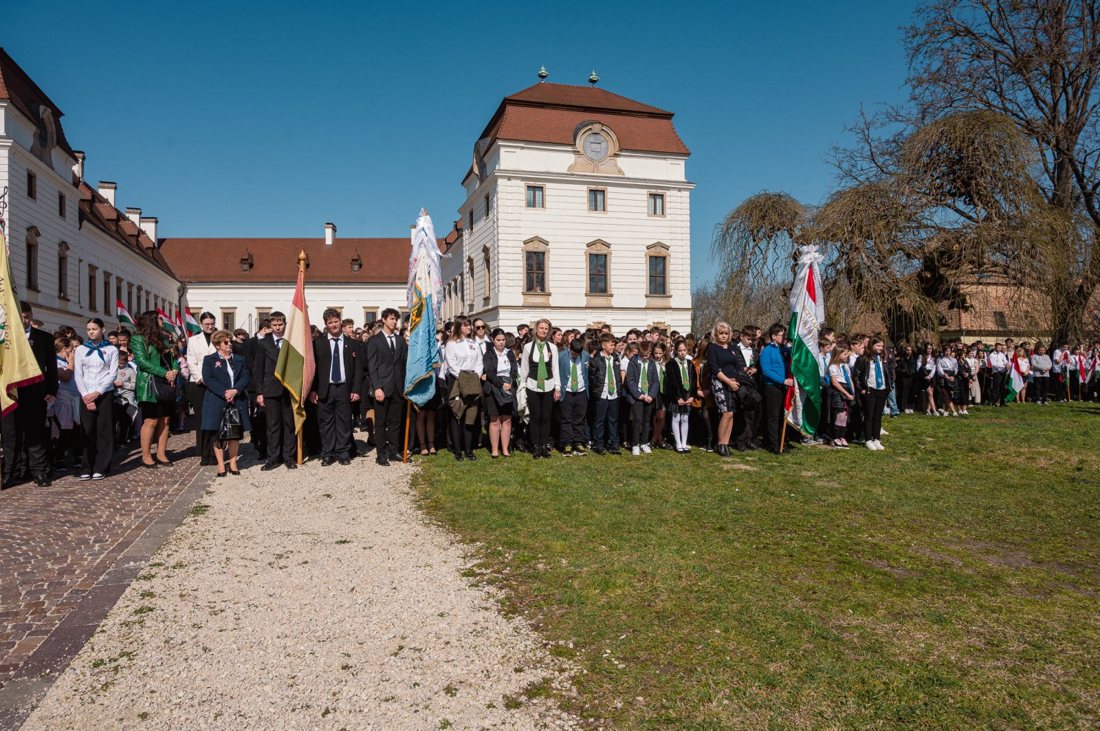 A közös szavalást Schrei Balázs, a Szent István Római Katolikus Általános Iskola magyartanára vezette. A több mint ezer diák egyszerre mondta a jól ismert sorokat, ami különleges, ünnepi hangulatot teremtett a kastély előtti téren.