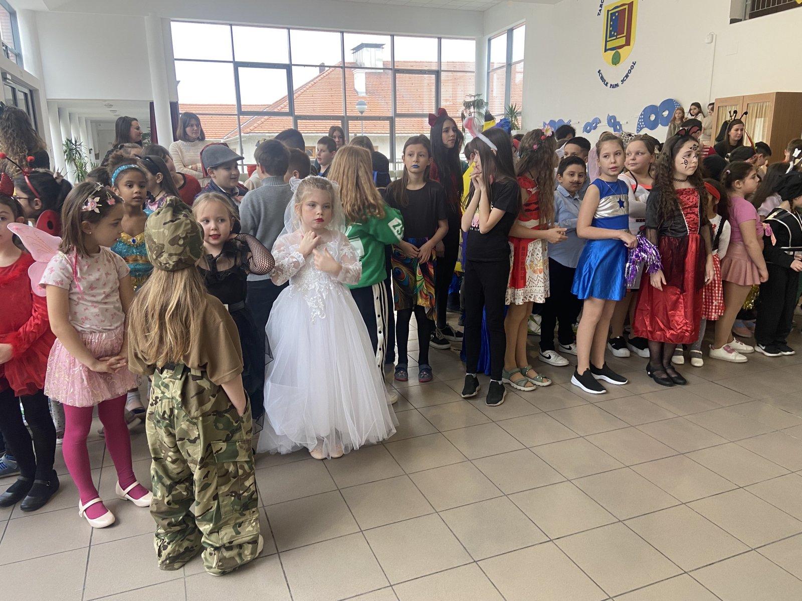 A jó hangulatú napközit némi felkészülés előzte meg, például színes alkotások készültek technika órán, amik az aulát díszítik. Tóth Gabriella tanárnő szervezésében egy rövid verset és éneket is hallhatott a diáksereg, majd következett a jelmezmustra. A tanulók táncolva járták körbe az aulát, majd saját osztálytermükben folytatódhatott a program. Mindenki készült nassolnivalóval, üdítővel.
