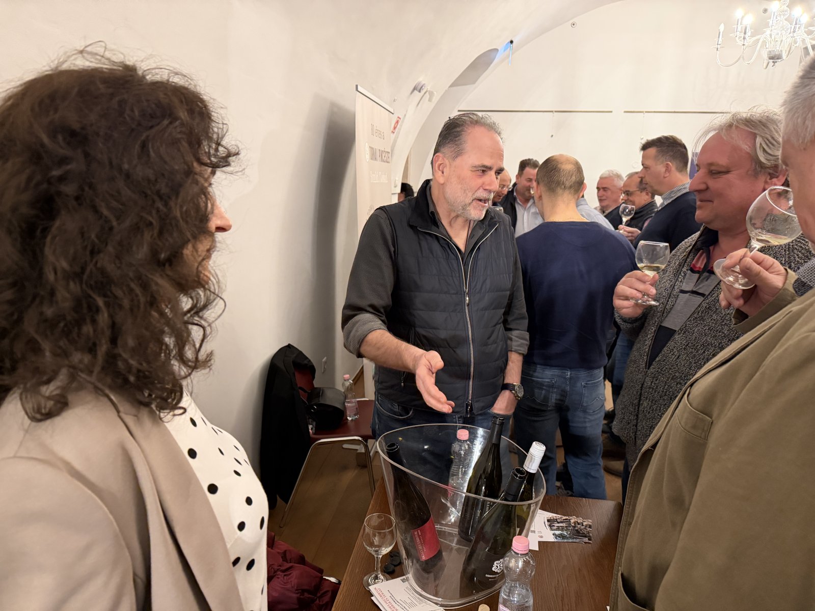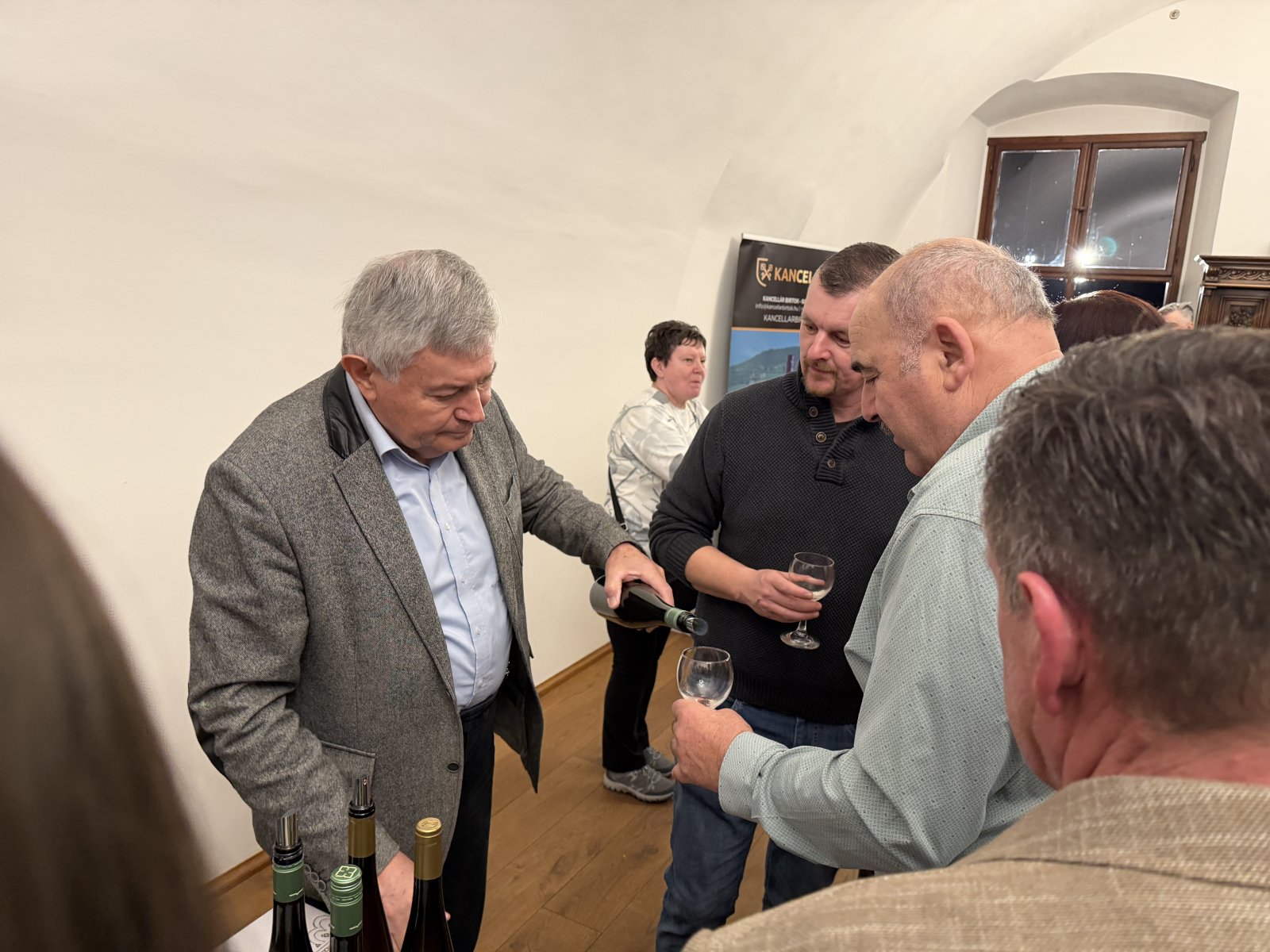 5. alkalommal szervezte meg a Somlói Borrend a már hagyományosnak mondható Bormustráját. A rendezvény legfőbb célja a somlói borok népszerűsítése így ez alkalommal is elhozták a pincészetek azokat a tételeket, amiket szeretnének bemutatni az érdeklődőknek. A klasszikus zászlóshajón, a juhfarkon kívül a hegyközség minden fajtája jelen volt és mivel a hegy különböző részein más és más az ásványosság, a pincészetekben más és más a bor kezelése, ezért mind a kilenc asztalnál más és más borokat kóstolhattak a jelenlévők. Unger Tamás a Somlói Borrend nagymestere elmondta, hogy fontosnak tartják megszervezni ezeket az estéket, hiszen egy-egy ilyen alkalommal lehetőség van arra is, hogy a termelők és fogyasztók beszélgessenek, a pincészetek közvetlen visszajelzést kapjanak, az érdeklődők pedig minél jobban megismerjenek egy-egy fajtát. Bogdán József a Bogdán Birtok tulajdonosa úgy fogalmazott, hogy Pápa nekik tradicionális hely, minden boros rendezvényen itt a helyük. Most 4 fajta bort hoztak és itt mutatják be a 2025-ös Irsai Olivért, ami az első visszajelzések alapján nagyon kedvelt tétel lesz. A Kancellár Birtok is hozott Irsai Olivért szintén 2025-ből, de elhozták a világ legjobb borának választott SomlAI Cuvée '21 inverzét, ami egy juhfark alapú cuvée. Baráth Sándor két különböző évjáratú juhfarkot hozott valamint a birtok borát 2022-ből. A Borókás pincészet még nem volt Pápai Bormustrán. A 2024-es indulásuk óta szeretnének minél több helyen bemutatkozni - mondta Szabó Zoltán a pincészet tulajdonosa. A Clements Pincészet is hozott juhfarkot, rizlinget és egy igazi különlegességet a késői szüretelésű juhfarkot. A Hegedűs-Szabó pincészet is a hegy híres fajtáit hozta, furmintot, hárslevelűt és rizlinget. A Szalai pince tulajdonosa spontán erjesztéssel készíti borait. Ma este juhfarkot, furmintot és Irsai Olivért hozott. Mivel a Ság-hegy is a Somlói-borvidékhez tartozik a Dénes hegybirtok kétféle furmintot, egy olaszrizlinget és egy különlegességet, egy vörös bort hozott. A Tornai Pincészet ez évben ünnepli 80. születésnapját sok-sok rendezvénnyel, amire mindenkit invitálnak. Ezen az estén két tételt emelt ki Dományházi Éva, egy 2022-es grófi hárslevelűt és egy 2021-es apátsági furmintot. A KaBor Somlói Borbirtok asztalánál is sokan kóstoltak, méghozzá a 2022-es olaszrizlinget, valamint furmintot és egy 2023-as juhfarkot. A közel 100 vendég asztaltól asztalig járt a termekben és saját ízlésének megfelelően válogatott. Gőgös Zoltán először vesz részt ilyen Bormustrán és mint elmondta nagyon jó kezdeményezésnek tartja. Fontosnak tartja a minőségi borokat és a kulturált borfogyasztást amit itt ezen az estén meg is talált.