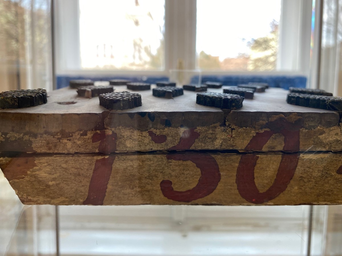 A Kékfestő Múzeum hónap műtárgyaként ezúttal egy különleges kékfestő nyomódúc került bemutatásra a Kluge-gyűjteményből. A tárgyról dr. Méri Edina néprajzos mesélt, aki kiemelte: a darab nemcsak szépsége, hanem ritkasága miatt is figyelemre méltó. A nyomódúc az 1800-as évek második feléből származhat, vagyis a műhely működésének korai időszakában készülhetett. Valószínűleg egy formakészítő műhelyben faragták, kifejezetten textilnyomáshoz.Ez a darab már nem egyszerűen fából faragott mintafa, hanem úgynevezett réztüskével beültetett nyomódúc. Ez fejlettebb technikát jelentett: a finomabb részleteket apró fémtüskékkel alakították ki, így precízebb, tartósabb mintázatot lehetett elérni. A dúcon a 130-as szám látható. A műhely számozással látta el mintáit, és mivel összesen körülbelül 400-500 kézi nyomódúccal rendelkeztek, ez az alacsony sorszám arra utal, hogy a darab az első minták közé tartozott.