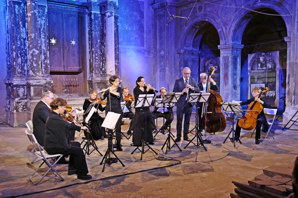 - Induló zsinagógakoncertjeink egyik első állomása volt öt évvel ezelőtt a pápai zsinagógakoncert, és mivel ez az egyik legjelentősebb hazai zsinagógánk, így most újra visszajöttünk – nyilatkozta hírportálunknak Ács Ákos, a Budapesti Fesztiválzenekar szóló klarinétosa, a pápai koncert narrátora - Zenekarunk közösségi hangversenyei négy részből állnak, katolikus templomokban játszik barokk együttesünk, elhanyagolt térségek falvaiba interaktív gyermekelőadásokat viszünk, de fellépünk idősek otthonaiban is, valamint elhagyott, funkciójukat vesztett zsinagógákban. És ezt a tervet próbáljuk ezekben a nehéz időkben is tartani. Ma esti pápai műsorunkban tartjuk azt a hagyományt, hogy vagy zsidó zeneszerző, vagy zsidó dallamok hangozzanak el a repertoárban – jegyezte meg Ács Ákos, aki azt is hozzáfűzte, hogy reméli, az impozáns pápai zsinagóga hamarosan megújulhat majd.