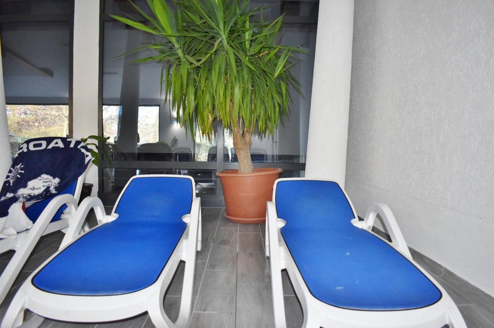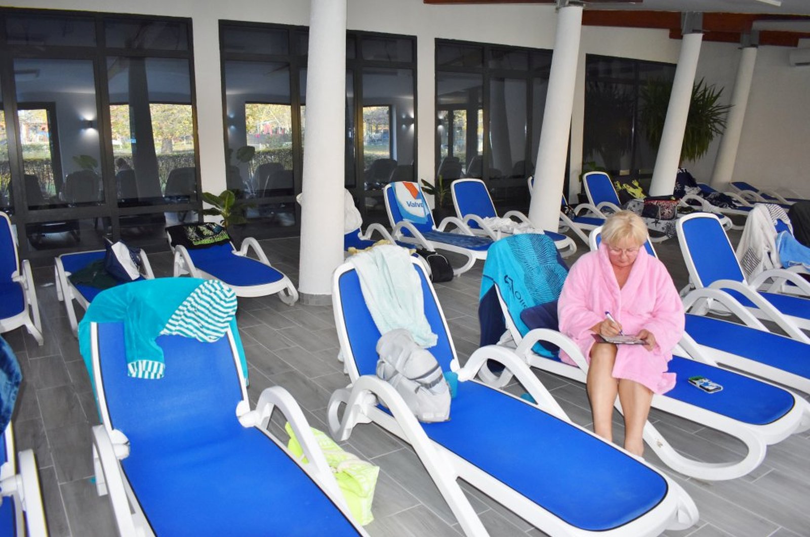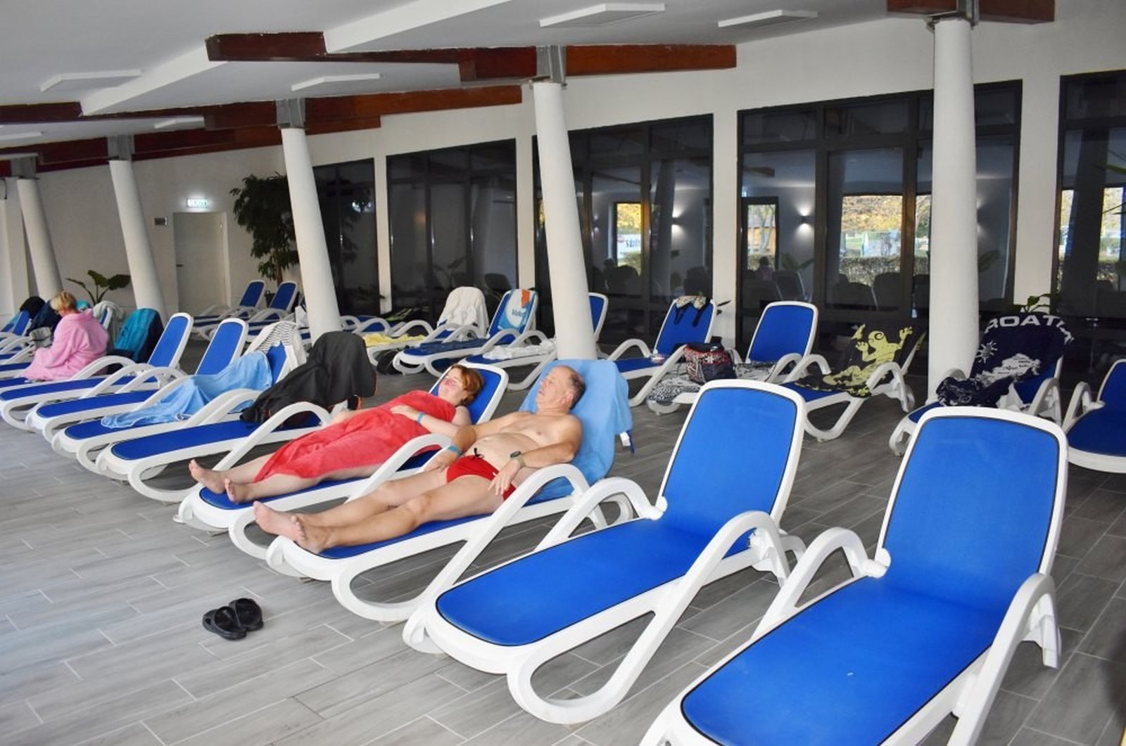 A helyiséget a fallabdapálya előtt lévő, strandra néző, félig fedett területből alakították ki, ezt a helyet korábban a nyári táborozók étkeztetésekor használták, de igazi funkciója nem volt. Most a féltetőt meghosszabbították az épület síkjának vonaláig, nagy üvegablakokkal megépítették a külső határolófalát, járólappal burkolták a padlót, világítást szereltek az így kialakult tágas helyiségbe és hűtő-fűtő klímákat helyeztek el a megfelelő hőmérséklet biztosítására. A csendes, nyugodt pihenésre alkalmas helyiség a termálfürdő aulájából közelíthető meg és mindössze pár méterre van a medencetértől.