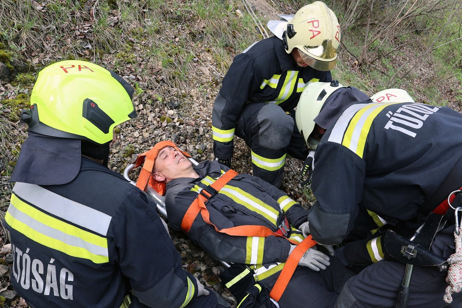 Az összetett gyakorlat során nehéz terepen, ismeretlen környezetben, kötéltechnikával gyakorolták a sebesültek mentését – olyan képességet, amit repülőgépek szűk tereiben is alkalmazni tudnak.