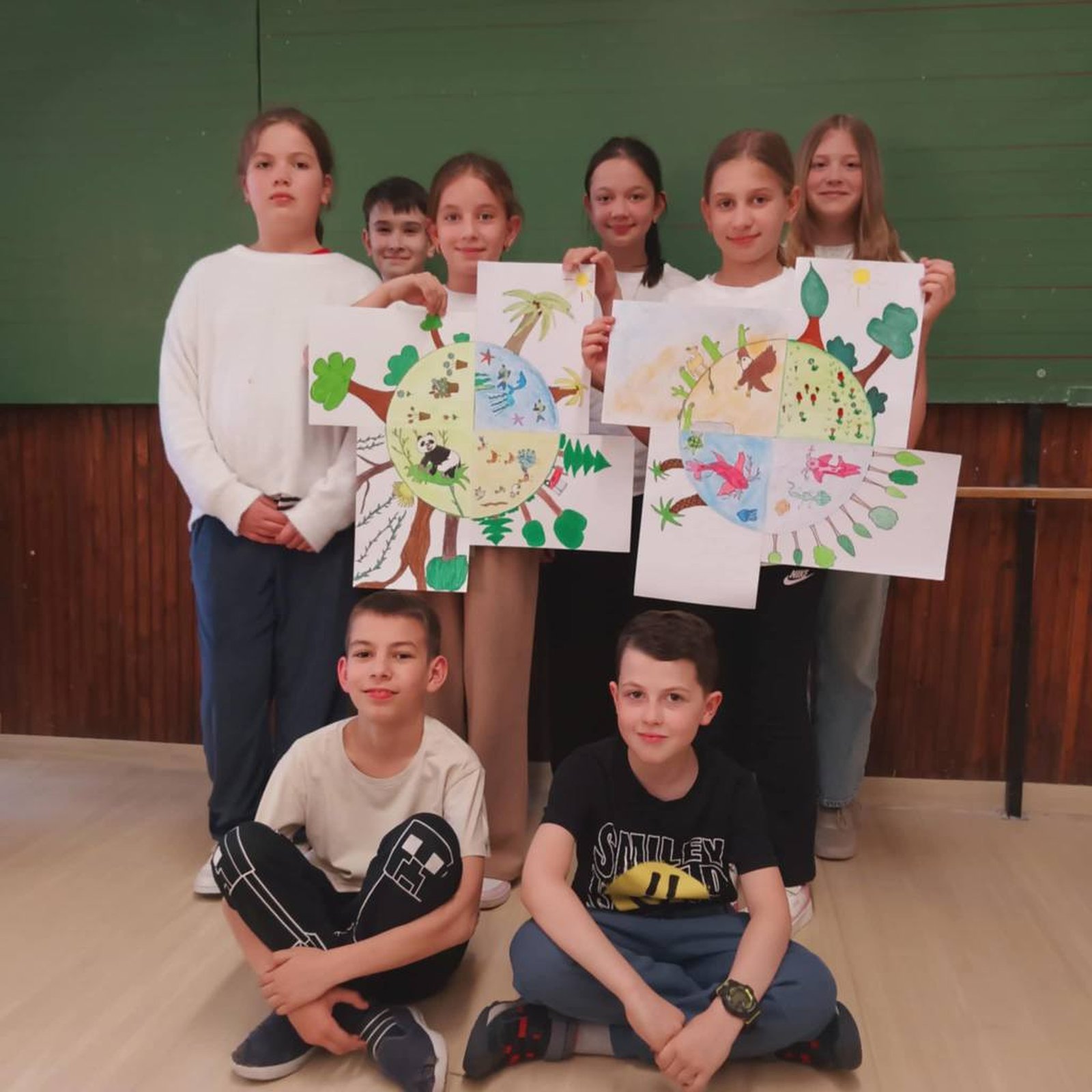 A 3-4. évfolyamos gyerekek csoportokban dolgoztak, négy tanuló jelenítette meg a Föld állatait külön-külön, hogy aztán azok egy színes, izgalmas, sokszínű képpé álljanak össze, egy olyan világgá, amire nagyon kell vigyáznunk.