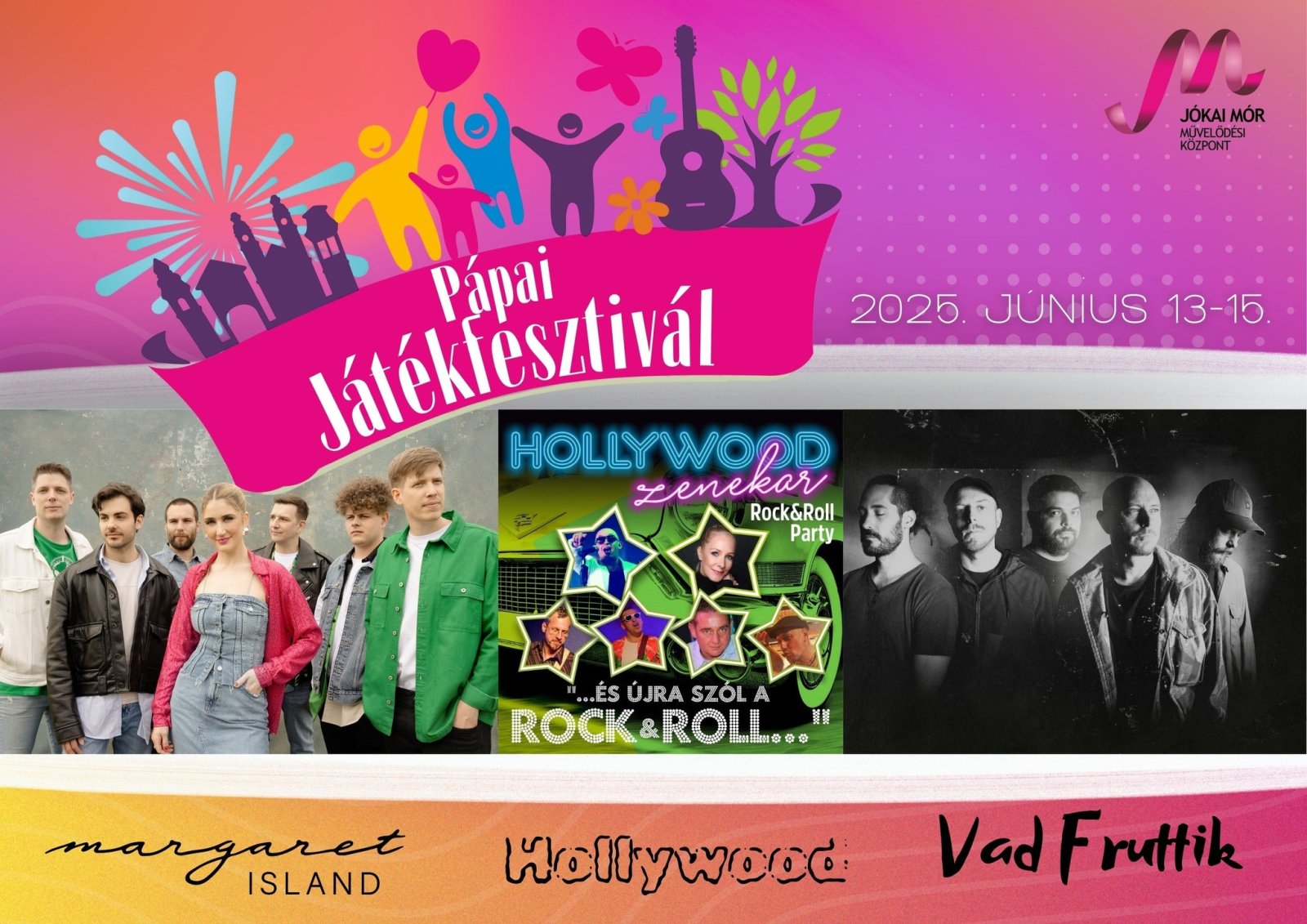A Pápai Játékfesztivál a pápaiak egyik legkedveltebb nagyrendezvénye, amely évről évre izgalmas várakozást kelt a koncertek miatt. Az idei évben is sokan találgattak a fellépő zenekarokkal kapcsolatban. A szervezők nemrég bejelentették a Játékfesztivál Facebook-oldalán a fellépőket. A fesztivál június 13-ától 15-éig tart, és a nagykoncertjein a Margaret Island, a Hollywood és a Vad Fruttik lépnek fel. A rendezvény várhatóan nagy népszerűségnek örvend majd a közönség körében.