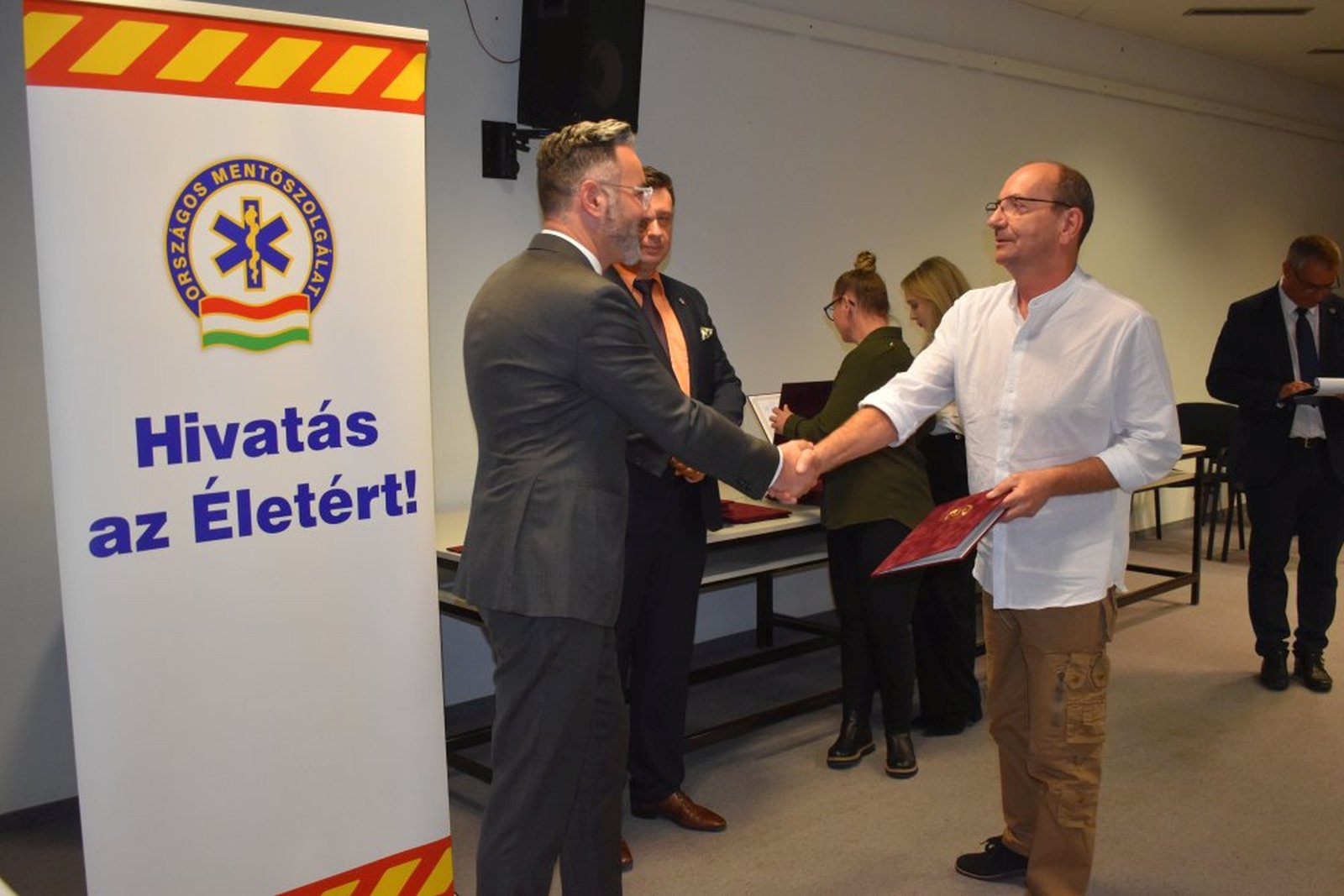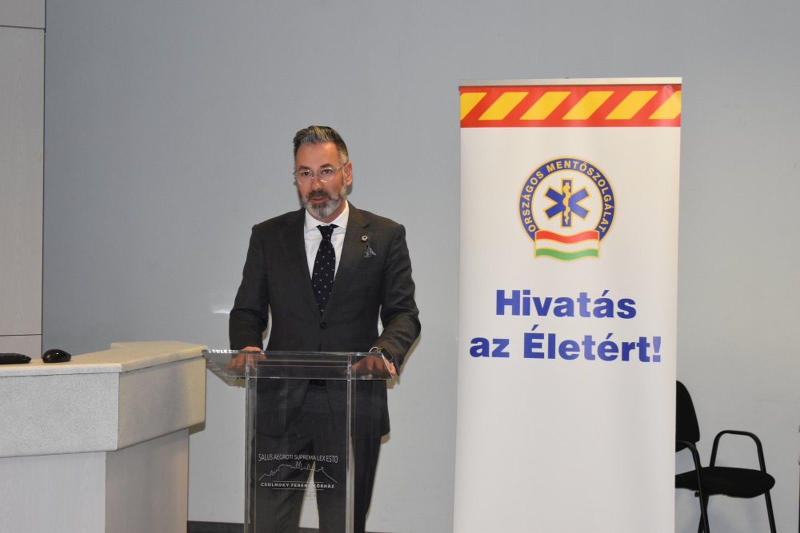 A közép-dunántúli régió mentőseinek szerdán délelőtt Veszprémben mondtak köszönetet feletteseik. Az ünnepi értekezleten, melynek a Veszprém Vármegyei Csolnoky Ferenc kórház adott otthont dr. Jászkuti Ákos regionális orvosigazgató üdvözölte kollégáit, beszédében hangsúlyozva, hogy a mentősök minden nap azért dolgoznak, hogy szolgálják bajbajutott embertársaikat. Elmondta, ma 18 ezer bajtárssal az ország legnagyobb egészségügyi szolgáltatója a Mentők, mely a mentésen kívül kórházak közötti betegszállítást, a kiemelt rendezvények egészségügyi biztosítását és orvosi ügyeletet teljesít. Úgy fogalmazott, nemcsak tudás és szakértelem, de bátorság, empátia, elhivatottság is van a mentősökben. Ezek az erények szükségesek ahhoz, hogy minden nap helyt tudjanak állni és ettől a közös gondolkodástól, közös értékektől lesznek a mentősök egyedülálló bajtársi közösség. Az igazgató köszöntőjében felidézte az 1887 óta eltelt időszak roppant technikai fejlődését, majd hangsúlyozta, a technika és az AI eddig és ezután sem tudja pótolni a humánumot, a gyors, mindent mérlegelő és körültekintő, felelősségteljes döntést és cselekvést: a mentődolgozót, a bajtársat.