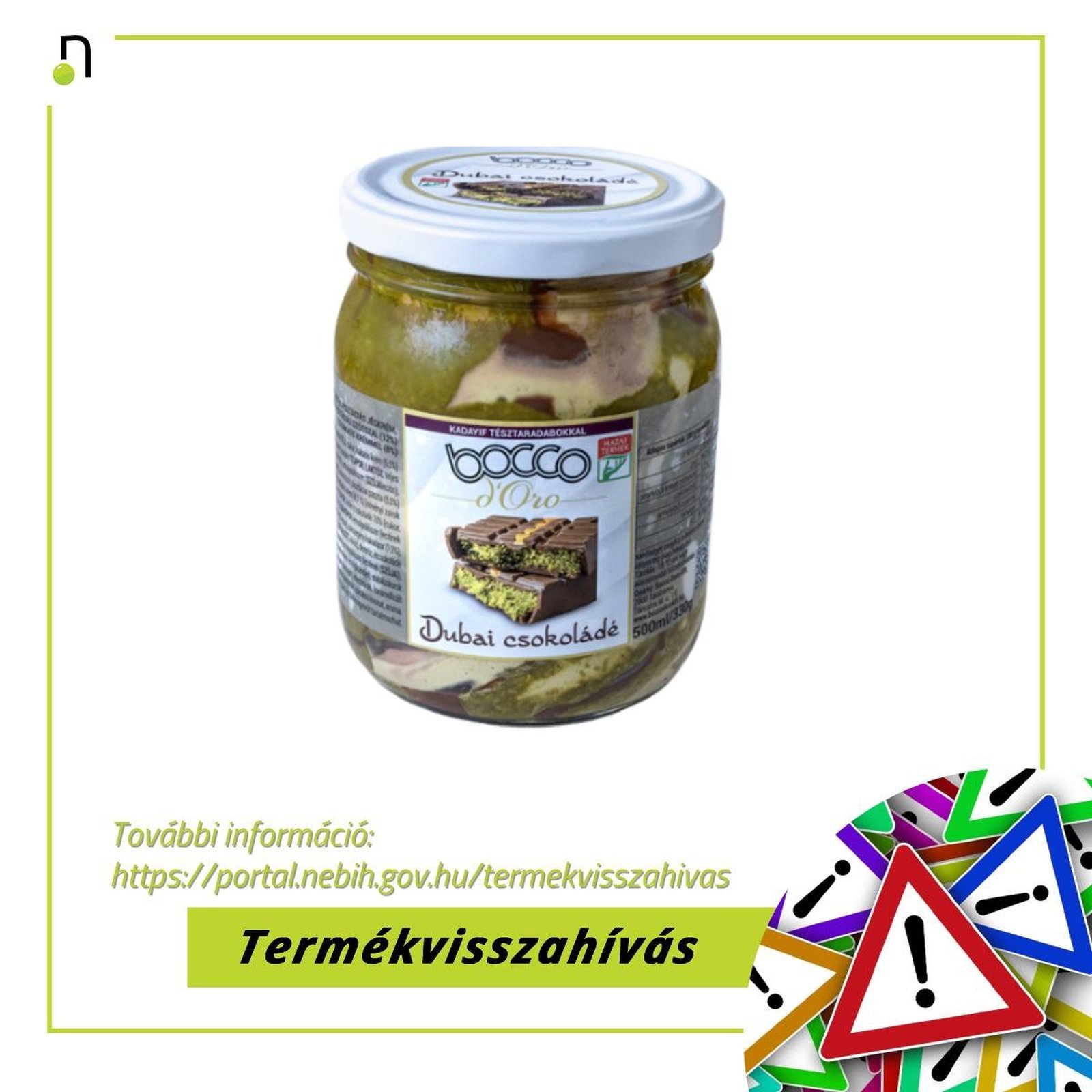 A problémával érintett termék a Bocco Doro Kft. által gyártott, 500 milliliteres, 330 grammos, üveges kiszerelésű Dubai csokoládé jégkrém, melynek minőségmegőrzési ideje 2027.04.11.