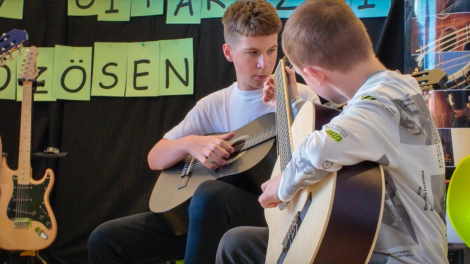 ÉKG – vagyis Élmény közösen gitározni. Ezzel a mottóval rendezte meg idei koncertjét az Allegro Alapfokú Művészeti Iskola gitártanszaka. Kemenczki Gábor és tanítványai az Allegro Ákos Dorka vezette kamarakórusának közreműködésével pénteken délután a Szent István Római Katolikus Általános Iskola Fő téri épületének aulájában tartották tanévzáró koncertjüket.