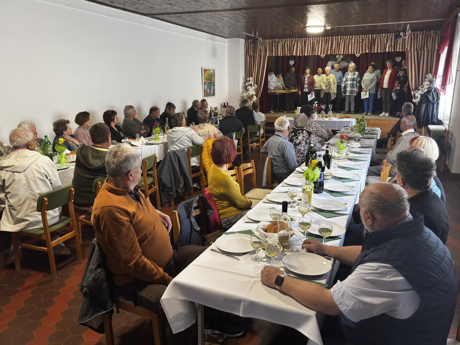 Kiemelte azokat a tagokat, akik az elmúlt félév során aktívan részt vettek a rendezvények szervezésében. Kiss Zoltán egy volt tapolcafői lakos vidám versének felolvasása után a Tapolca Forrás Népdalkör citera- és énekelőadása emelte az est hangulatát. Megyeriné Borsó Éva köszöntötte az első félév névnaposait és a 70 éves szülinaposokat. 70 éves szülinapos volt Őry János és Somogyi Zoltán kertbaráttagok, akik egy gravírozott borosüveget kaptak ajándékba.