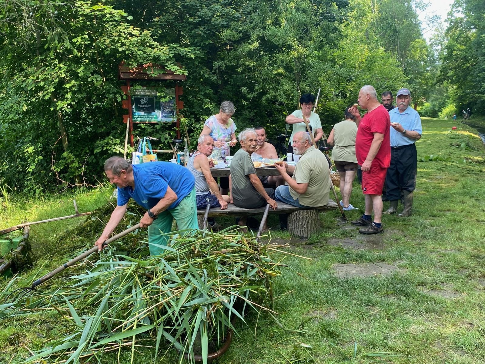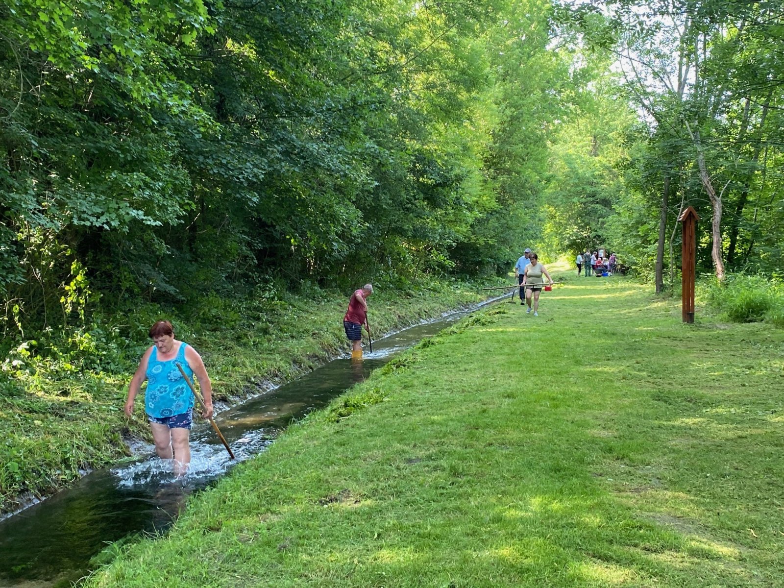 Levágták a füvet a patakmeder két oldalán, a medret is megszabadították a mohától, az oldalfalra tapadt növényektől, valamint padkat és táblákat is festettek.