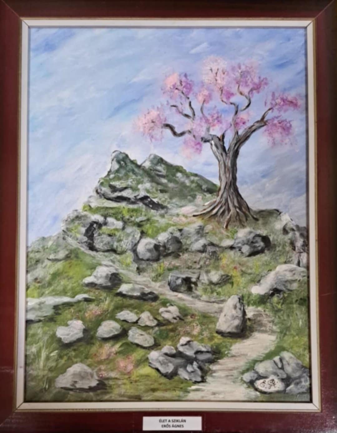 Az Összefogás Pápa Város Beteg Gyermekeiért Alapítvány árverésre bocsátja Erős Ágnes kortárs alkotó: Élet a sziklán című festményét /40 x 30 cm, akril, farost (2023)/, melyet a művész ajánlott fel az Alapítvány céljainak támogatása érdekében.