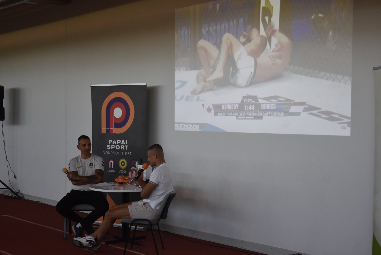 A beszélgetést Korpics Gábor, a Koko-gym SE edzője vezette, aki legutóbbi meccséről is kérdezte a harcost. - Az Egyesült Államokban a Professional Fighters League (PFL) 5-ös gáláján léptem ketrecbe, ahol azzal a Jeremy Kennedy-vel meccseltem, akit 2021-ben már legyőztem a Bellator tornáján - mesélte Ádám. - Az első menetben egy kombinációval sikerült padlóra küldeni, sajnos ott nem tudtam idő előtt befejezni a mérkőzést, végül végigment a három menet, de többségi pontozással engem hoztak ki győztesnek.