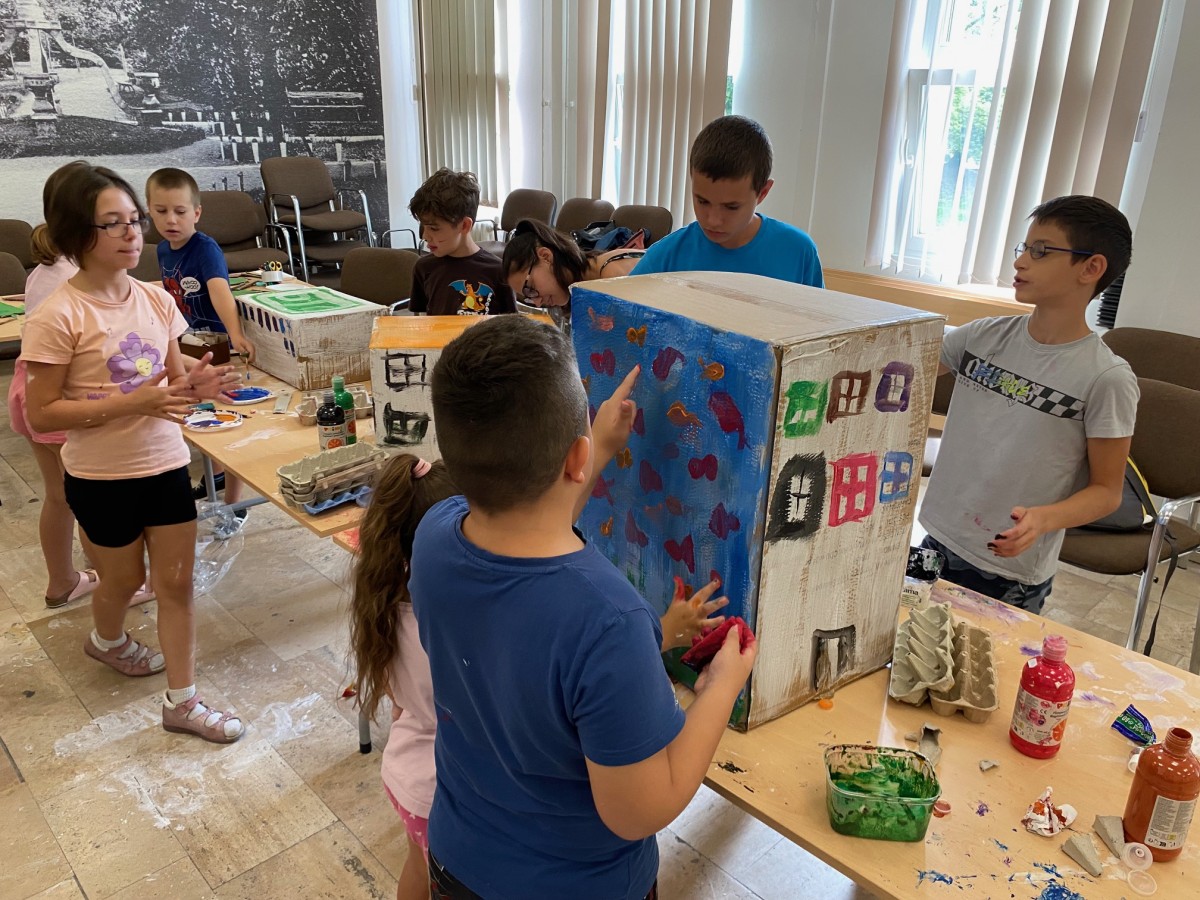 A gyerekek kedvenc programja egy veszprémi kirándulás volt, ahol a Kabóca Bábszínház vendégei lehettek. Emellett a hét folyamán kreatív kézműves-foglalkozásokon is részt vettek: maszkokat készítettek, majd közösen megterveztek és felépítettek egy képzeletbeli várost. Először megálmodtuk az alaprajzot, aztán kiválasztottuk, melyik dobozból milyen épület lesz. Parkokat, házakat, boltokat terveztünk - igazi csapatmunka volt, mindenki segített mindenkinek - mondta Federits Zsófia.