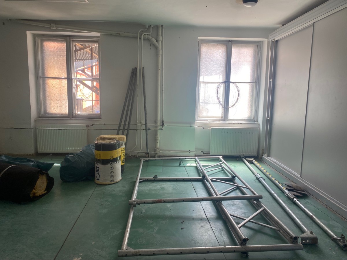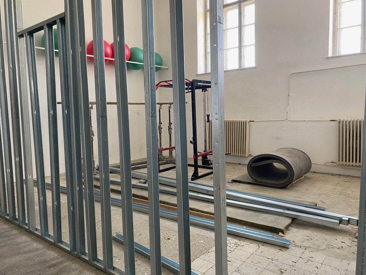 A tornaterem előterében építik ki a fiúk öltözőjétA munkálatok a tetőszerkezetet is érintik. Az elöregedésből adódó beázások megszüntetése, a lapos tető felújítása és az ereszcsatornák javítása is szerepel a feladatok között. A felújítás előreláthatólag augusztus végéig tart, így szeptemberben megújult környezet várja majd a gimnázium diákjait.