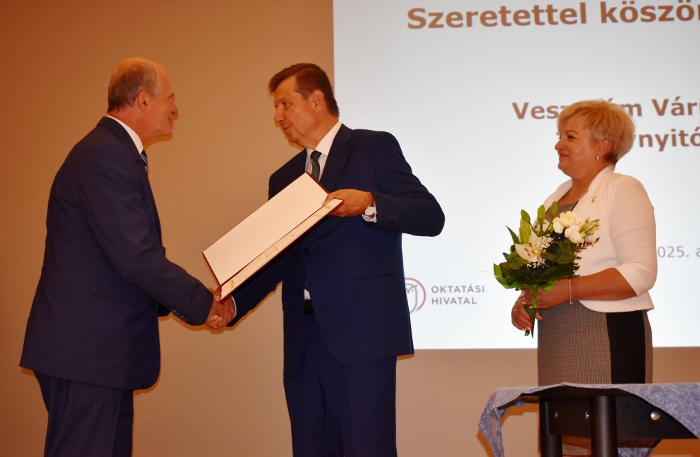 Államalapító Szent István ünnepe alkalmából miniszteri elismerő oklevelet kapott Venczel Csaba, a Tarczy Lajos Általános Iskola igazgatója, kimagasló szakmai tevékenysége elismeréséül. A dr. Pintér Sándor belügyminiszter által adományozott kitüntetést kedden délután vehette át az igazgató a Veszprém Vármegyei Szakmai Tanévnyitó Konferencián. Az oklevelet Sipos Imre köznevelésért felelős helyettes államtitkár és Egyházi Andrea, a Pápai Tankerületi Központ igazgatója adta át.