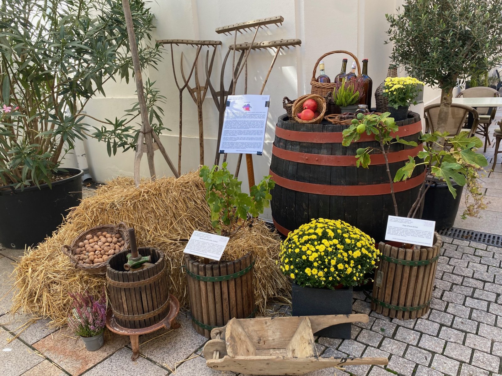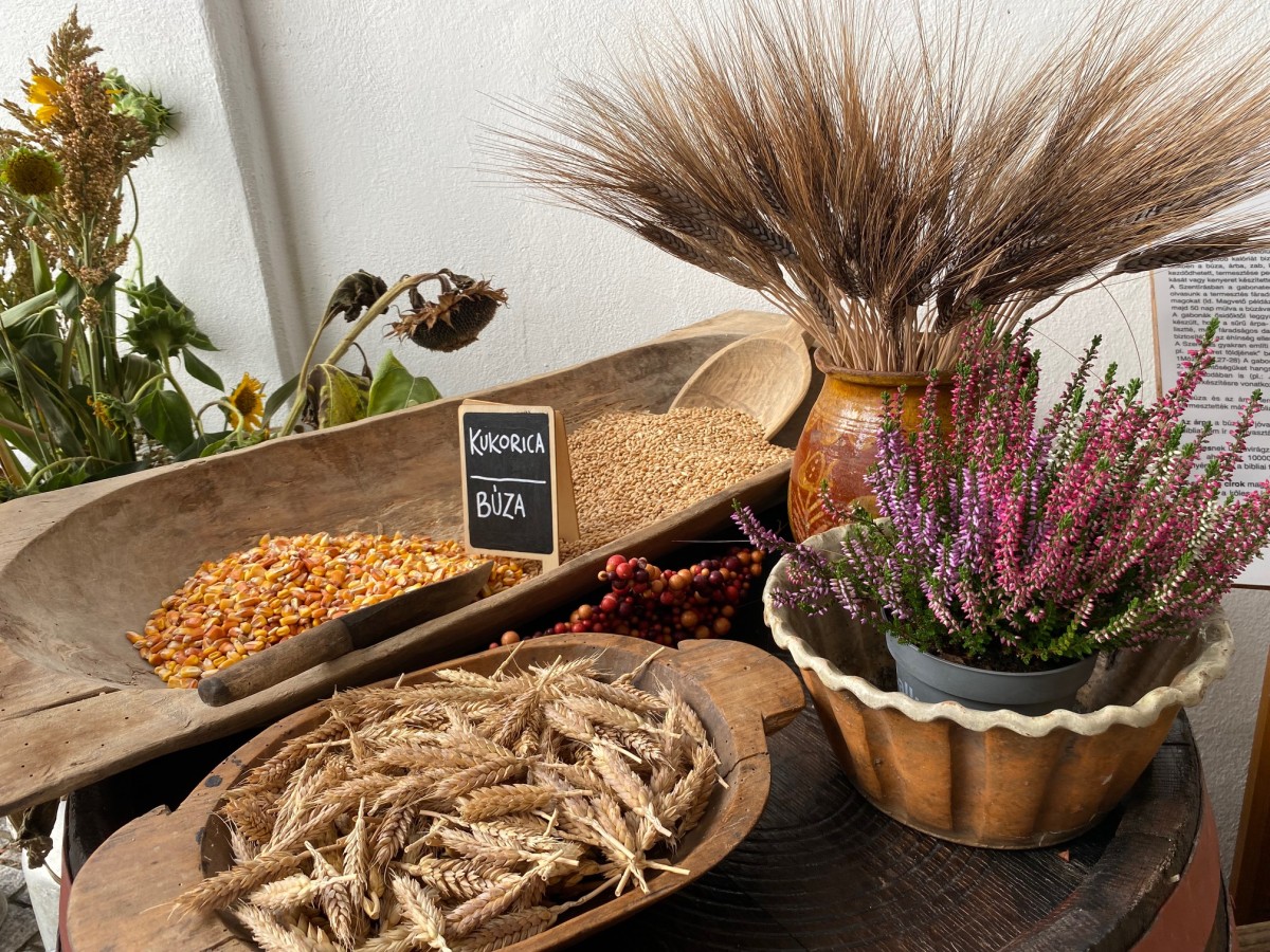 Az őszi udvarban interaktív módon elevenednek meg a Biblia növényei. Külön-külön láthatók a fűszernövények, zöldségfélék, gabonafélék, gyümölcsök, valamint a szentírásban a rossz szimbólumaiként említett mérgező növények is. A gyűjteményben helyet kap az olajfa, a fügefa és a szőlő is - mind olyan növények, amelyek bibliai üzeneteket hordoznak, és ismeretet, tudást adnak át a látogatóknak. A kiállítás szakmai hátterét Fráter Erzsébet botanikus munkája és könyve adta - mondta el Halászné Kapcsándi Szilvia múzeumvezető.