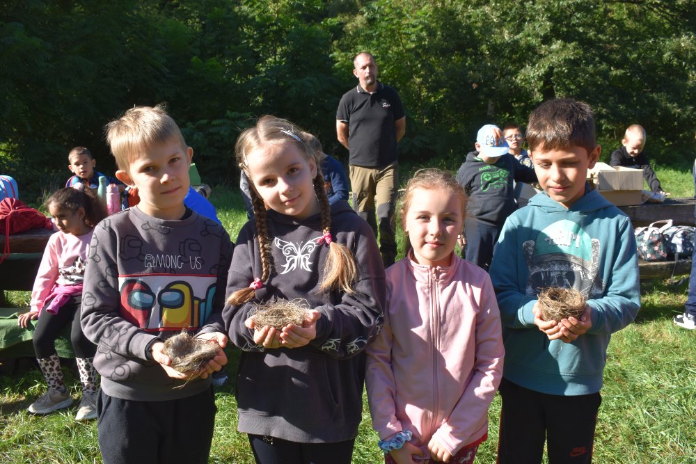 Az egyik diákcsoport a Pápateszéri Általános Iskola 2. és 3. osztályos tanulóiból állt, ők Huszárokelőpusztán ismerkedtek az erdő növényeivel és állataival. Egy különleges program is várta őket: a Bakonyi Természettudományi Múzeum munkatársa a madárgyűrűzést mutatta meg. Ehhez hatalmas hálókat húzott ki az erdei iskola melletti Rókapuszta réten, a megfogott madarak paramétereinek feljegyzése után pedig meggyűrűzte őket. A gyermekek nagy érdeklődéssel figyelték a szakember munkáját és óvatosan meg is simogathatták a kis barátcinegét. Az erdei iskolában egy másik érdekesség is fogadta a kicsiket, az erdő gyümölcseiből készült szörpöket és lekvárokat kóstolhatták meg. Az Erdei Iránytű Program a pedagógusok szerint is nagyon hasznos kezdeményezés, ráadásul olyan élményeket és tudást nyújt a gyermekeknek, amiket iskolai körülmények között nem élhetnének át.