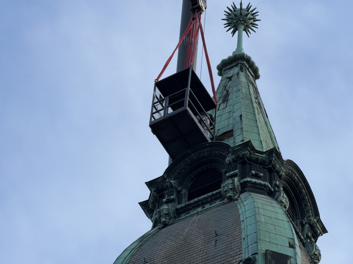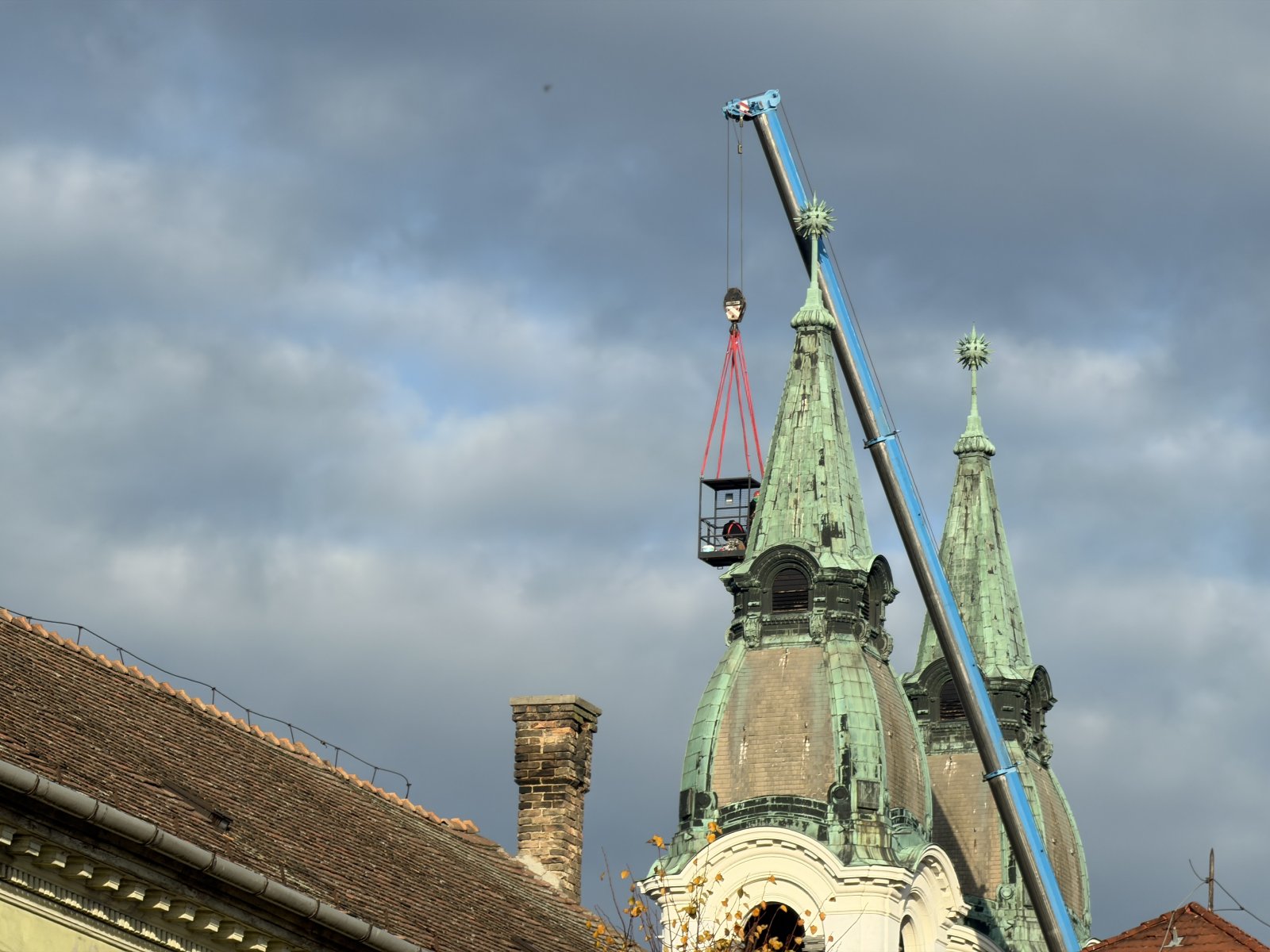 A sérült lemezek visszahelyezése azért sürgős, mert alattuk faszerkezet található, amely további beázás esetén komolyabb károkat szenvedhetne. A javítást nem lehetett alpintechnikával elvégezni, mivel a szakemberek nem tudtak volna megfelelően rögzíteni, ezért döntöttek a darus megoldás mellett.