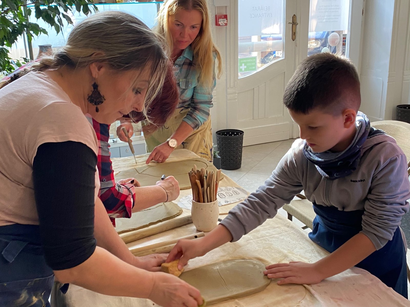 A résztvevők agyagból készítették el a mécsestartó alapját, majd csipkenyomással, egyéni mintázással vagy szabadon választott motívumokkal tették egyedivé alkotásukat. A díszítés és színezés után Reidmár Linda gondoskodik az égetésről, így a foglalkozás résztvevői hamarosan kész, tartós kerámiamunkáikat is kézbe vehetik.