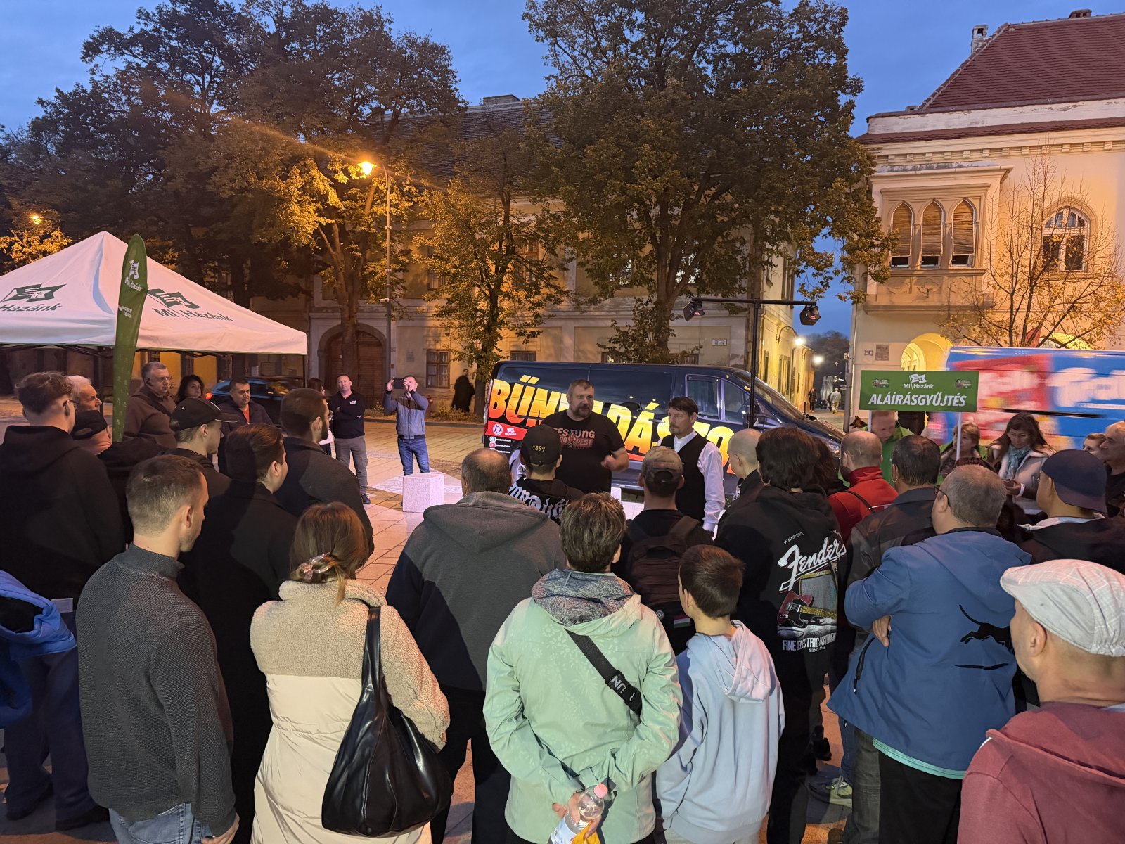 Utcafórumra várta az érdeklődőket pénteken délután a Mi Hazánk Mozgalom pápai csapata. A Fő téren összegyűlt embereknek először Kovacsics Zsolt, a Mi Hazánk Mozgalom Veszprém vármegyei vezetője mutatta be Nardai Pétert Veszprém vármegye 4-es választókerületének a Mi Hazánkos jelöltjét. A megyei elnök úgy fogalmazott: - A Péter szerintem egy nagyon-nagyon jó választás. Gyermekkora óta mindig is a nemzetben gondolkozott, nemzeti egységben, számára olyan értékek fontosak, ami miatt nem lehetett ő mellette elmenni. Arról beszélt, hogy a normalitás pártján, a normalitás útján szeretnék megmutatni, hogy hogyan lehet igazán másként foglalkozni a politikával, hogyan lehet képviselni azokat az értékeket, amiket évtizedek óta tulajdonképpen a sárba tipornak. Nardai Péter bemutatkozó beszédében így fogalmazott: - Mindig is úgy éreztem, a hazámat szolgálom, erre szántam az életemet. Fontosak voltak a közösség értékei számomra, történelmünk, a kultúránk, nyelvünk, hagyományaink, nemzetünk megmaradása, a közbiztonság, a létbiztonság megteremtése. Ezért csatlakoztam a Mi Hazánk Mozgalomhoz is. Teljesen egyetértek az ő értékrendjükkel. Mint elmondta egy jó kampányt szeretnének, nem szabad senkinek elhinni, hogy ki a nyerő, az embereknek kell dönteniük. A délután második részében a Bűnvadászok elnevezésű közössé vezetője szólt a jelenlévőkhöz. Bartal András a Magyar Önvédelmi Mozgalom és a Bűnvadászok vezetője elmondta, hogy Toroczkai László kérte fel őket, hogy teremtsenek közösen értéket. - a Magyar Önvédelmi Mozgalom a bajba jutottakon, a kisemmizetteken, a rászorultakon, a kifosztottakon segített és segít a mai napig is. A Bűnvadászok akciócsapata pontosan erre alapult és alapszik, hogy azokon a bajba jutottakon segítsünk, akin például az állami apparátus, a hatóságok nem képesek segíteni. A Bűnvadászok akciócsapata ez a kicsi apró csapat, közel másfél milliárd forint értéket adott vissza 8 hónap leforgása alatt a magyar embereknek. Megerősítette, hogy szigorúan a jogi lehetőségek határán belül járnak el a magyar törvények betartásával.
