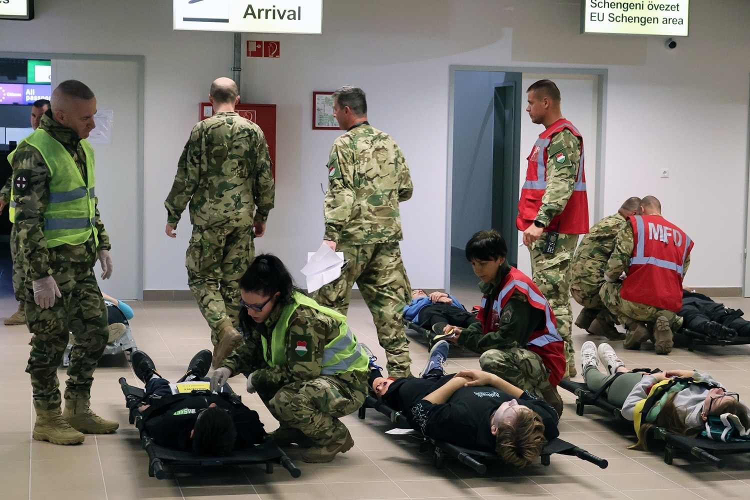 Vészhelyzeti szituációban kellett helytállniuk a napokban az MH 47. Bázisrepülőtér szakszolgálatainak egy gyakorlat során.
