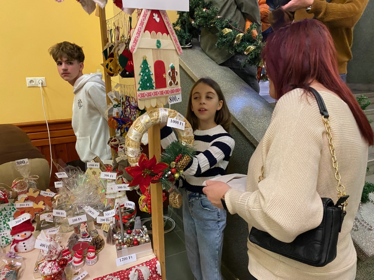 A dekorációtól az ajándékkészítésig mindenhol érződött a közös munka. A kandalló és környéke az SZMK-s szülők keze munkáját dicsérte, és a vásár egész hangulata azt a célt tűzte ki, hogy egy kis karácsonyi álmot varázsoljon az iskolába. A rendezvény már nem csak az iskola közösségét vonzza: egyre több városlakó érkezik kíváncsi szemmel, hogy megnézze, milyen különlegességekkel készül az Erkel Iskola. A gyerekek lelkesen ajánlgatták a portékákat: angyalok, festmények, sütemények, tombolanyeremények - minden korosztály talál magának valami szépséget vagy finomságot.