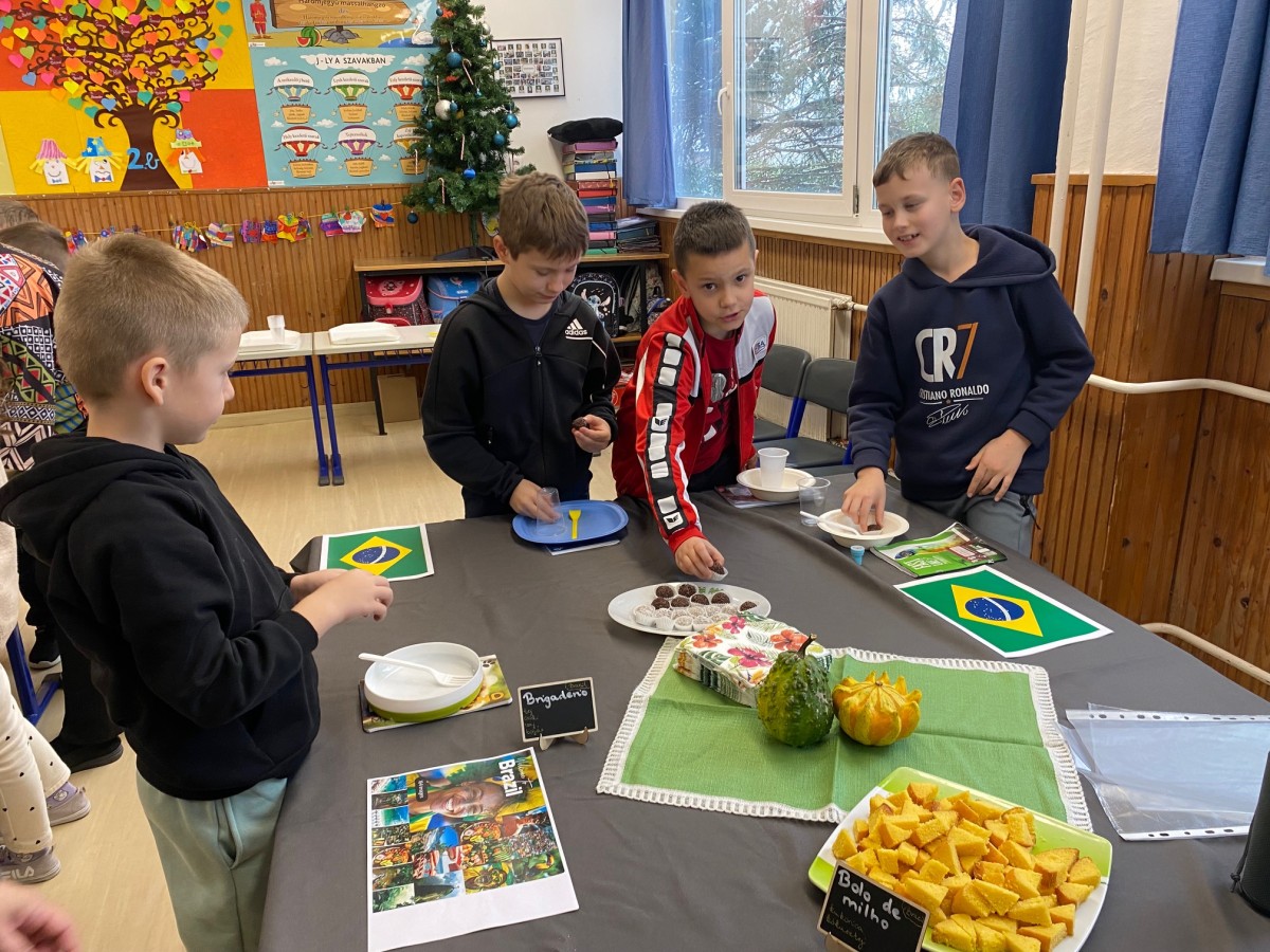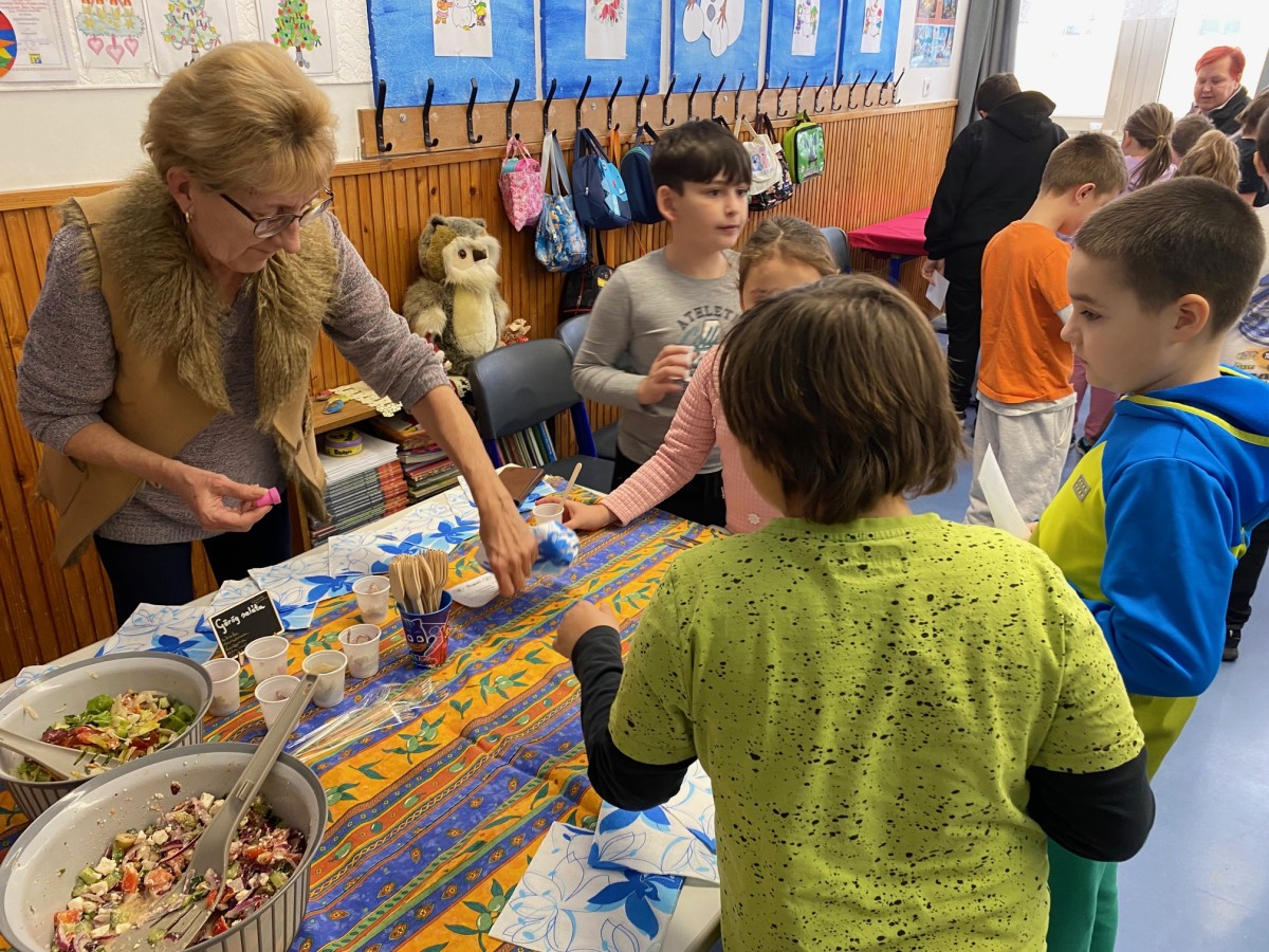 A gyerekek nemcsak kóstoltak, hanem aktív résztvevői is voltak a programnak: mindenki egyedi útlevelet kapott, amelyben az egyes országok határátlépésekor pecséteket gyűjthettek. A játékos forma nagy sikert aratott, a tanulók lelkesen fedezték fel az ízutazás állomásait.