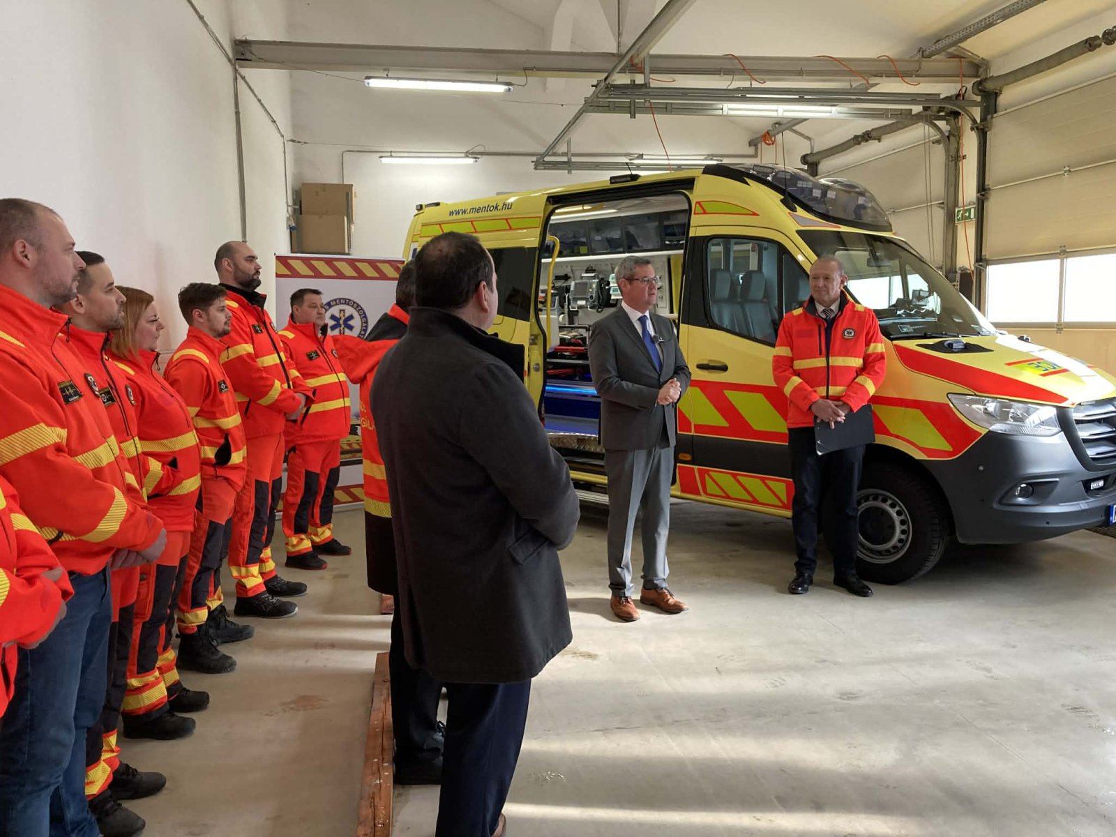Az Országos Mentőszolgálat 101 korszerű mentőautót vásárolt, amelyek a régi járműveket váltják ki Magyarország mentőállomásain. Az új Mercedes mentőautó hivatalos átadására Pápán került sor, ahol Győrfi Pál, az Országos Mentőszolgálat szóvivője köszöntötte a megjelenteket. A rendezvényen a résztvevők néma főhajtással tisztelegtek dr. Czirner József, az egykori regionális igazgató emléke előtt. Az új járművet dr. Takács Péter, a Belügyminisztérium egészségügyi államtitkára adta át, hangsúlyozva a flottának az elmúlt időszakban történt megfiatalodását. Az új mentőautók modern eszközökkel vannak felszerelve, amelyek elengedhetetlenek az életmentés sikeréhez.