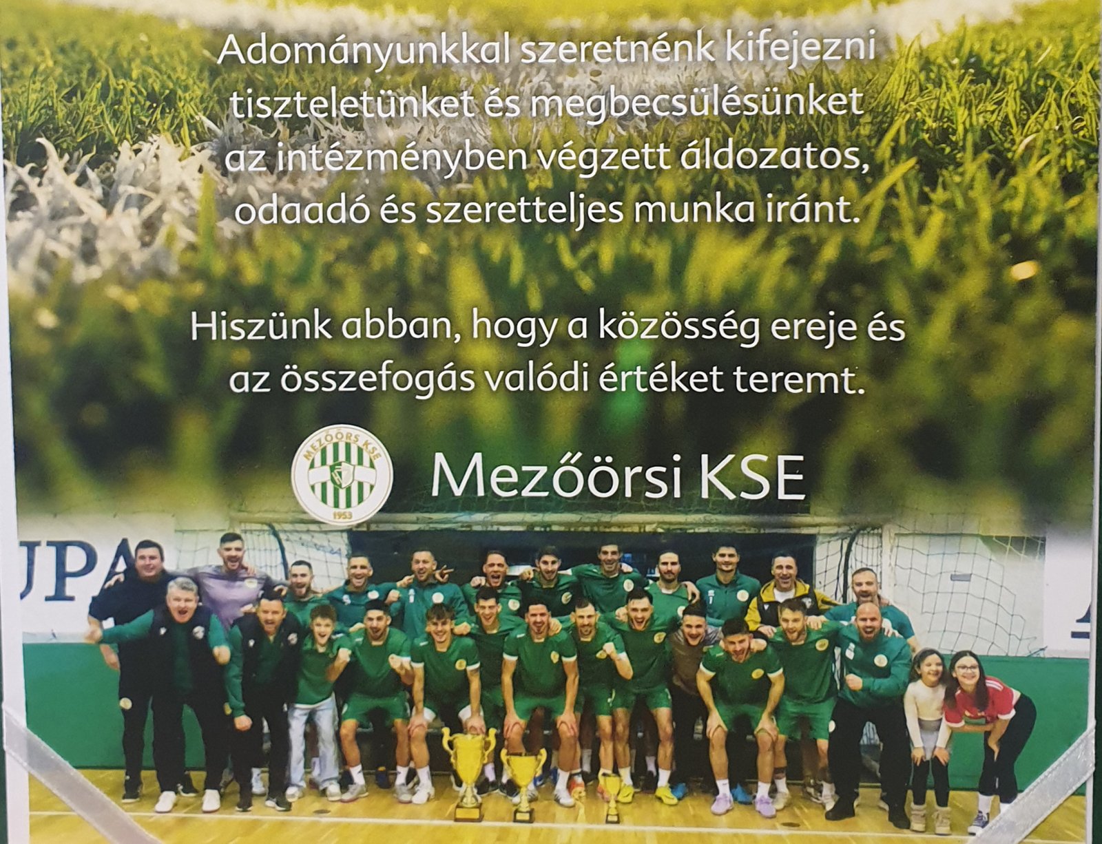 A Mezőörsi KSE labdarúgócsapata 500.000 forint adományt nyújtott át az Ujvári János Református Szeretetszolgálat pápai Fogyatékosok Nappali Intézménye számára. Az adományt Böröczky Bálint csapatkapitány és Venczel Zoltán adta át a református szeretetszolgálat vezetőinek. A jótékonysági akciót a csapat tavalyi kezdeményezése inspirálta, amely során a győri Petz Aladár Egyetemi Oktatókórház gyermekosztályának gyűjtöttek. Az Ujvári János Református Szeretetszolgálat intézményvezetője, Bornemissza Melinda, örömmel fogadta az adományt, amelyet programok szervezésére és eszközbeszerzésre fognak felhasználni. Jelenleg 23 ellátott jár a nappali intézménybe, ahol számos programot és táborokat szerveznek a fiatalok számára.