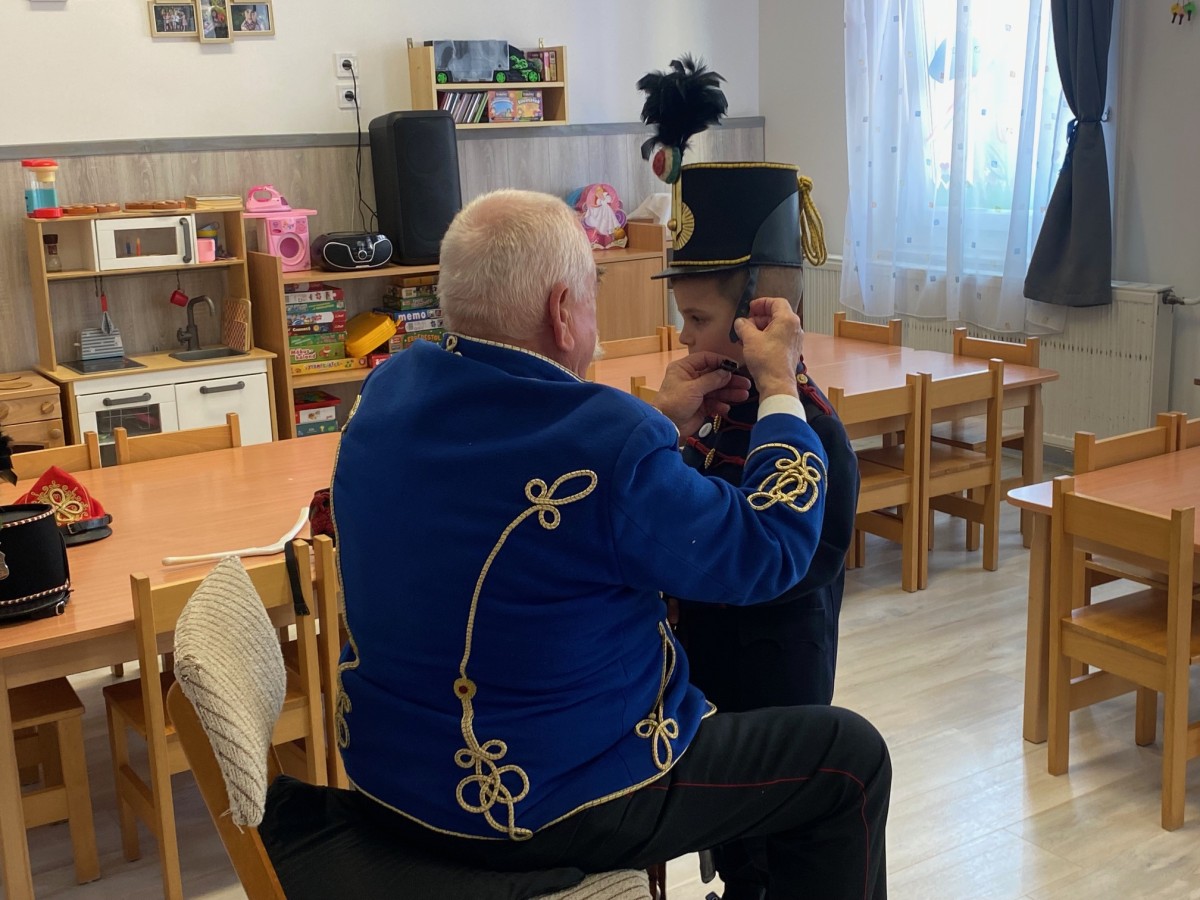 Simonné Balla Aranka intézményvezető szerint fontos, hogy a hagyományok tisztelete már óvodás korban megalapozódjon. Épp ezért két délceg huszárt is hívtak az ovisokhoz, Bolla Kálmán és Bedők János, a Pápai Huszáregyesület tagjai meséltek a gyerekeknek és megmutatták a huszárok felszerelését is.