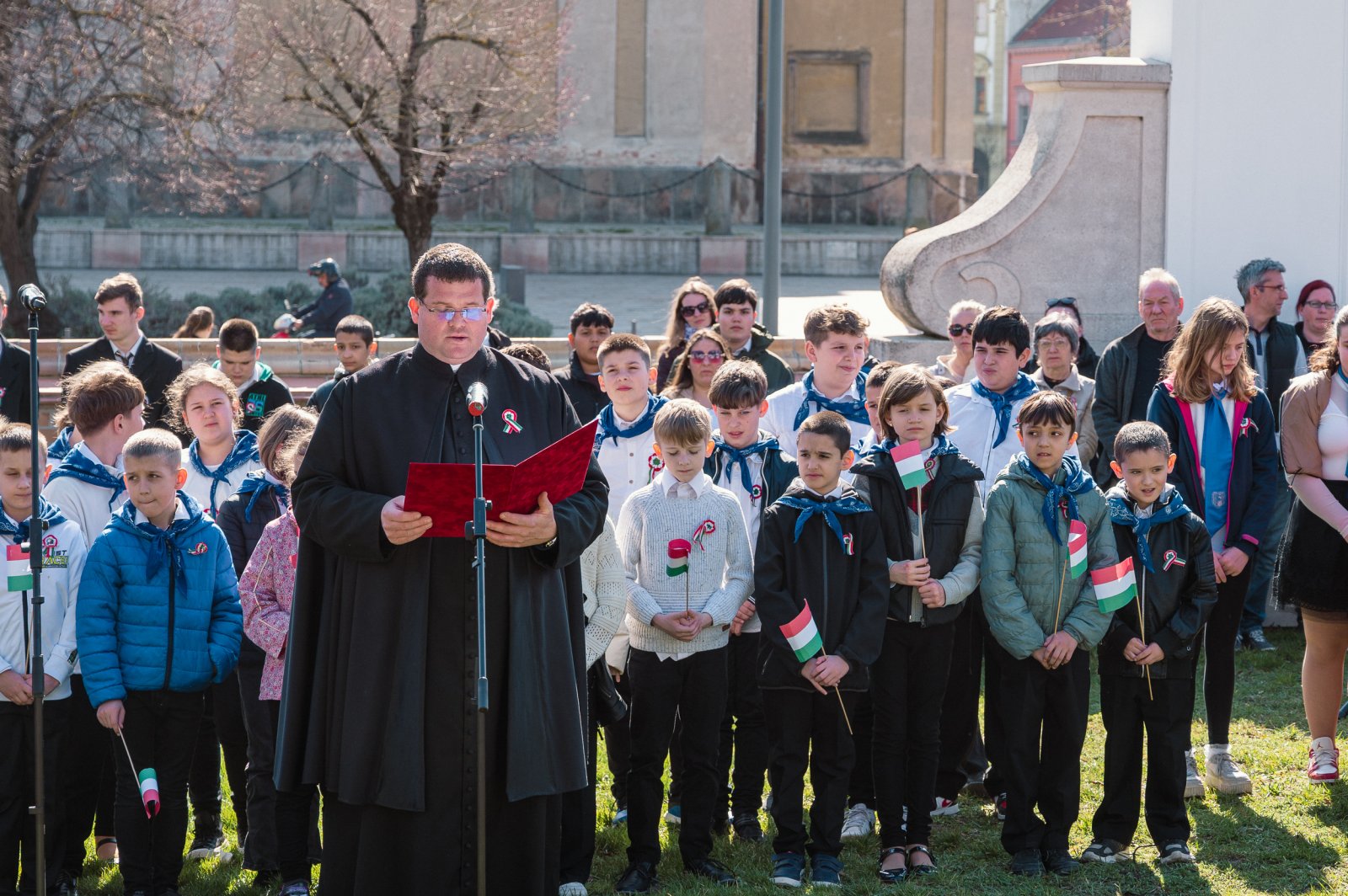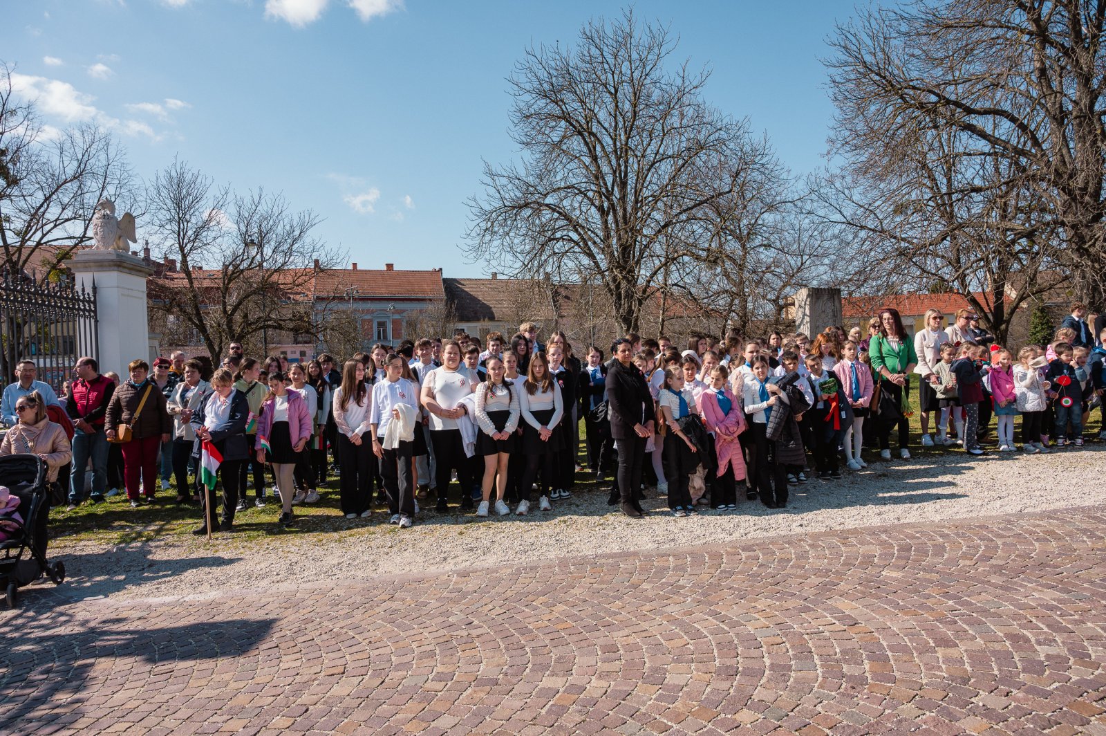 Közel ezerötszáz diák szavalta együtt a Nemzeti dalt pénteken délelőtt a Esterházy-kastély előtt álló Petőfi-szobornál. A közösségi eseményre pápai és Pápa környéki iskolák diákjai, valamint óvodások érkeztek, hogy megidézzék a forradalom szellemét. A rendezvényt Lampért Gábor kezdeményezte, aki tíz éve indította el ezt a hagyományt, amely mára a város egyik különleges márciusi eseményévé vált. Az idei jubileumi eseményen Cséry Gergő plébános köszöntötte a résztvevőket, míg Schilde René ünnepi beszédet mondott. A közös szavalást Schrei Balázs, a Szent István Római Katolikus Általános Iskola magyartanára vezette, és a rendezvényt a helyi iskolák kórusai is színesítették.