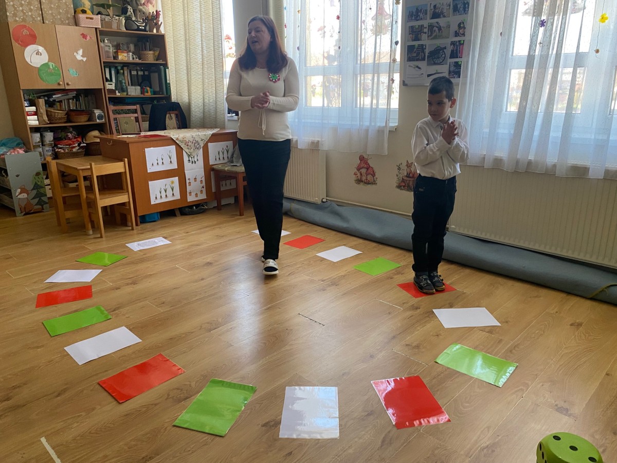 Az ünnephez mozgásos játékok is kapcsolódtak: az egyik csoportban például tematikus, mozgásos társasjátékkal tették még izgalmasabbá a megemlékezést.