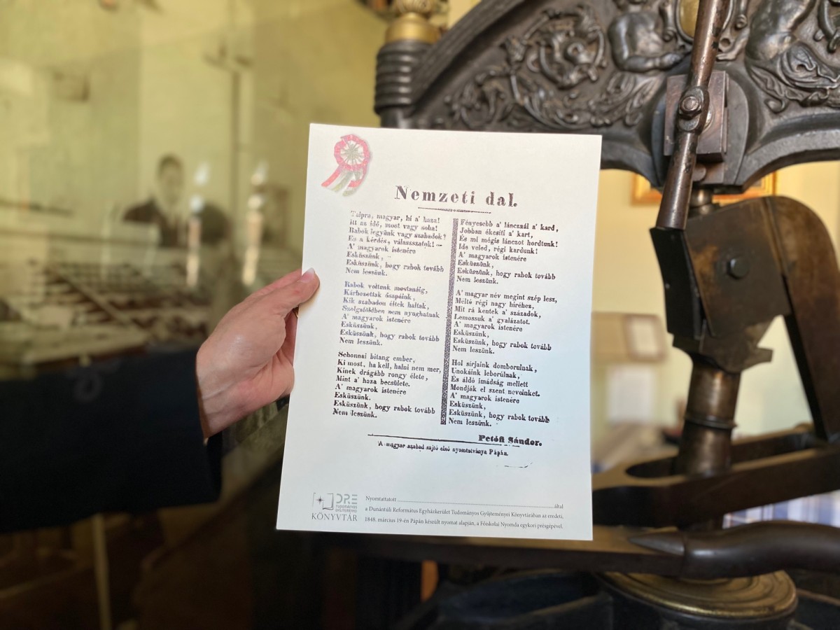 Március 15. alkalmából nyílt napot tartott a Dunántúli Református Egyházkerület Tudományos Gyűjteményei Könyvtára, amely délelőttől késő délutánig várta a látogatókat. Schilde René könyvtárvezető hangsúlyozta, hogy a nemzeti ünnepen hagyományosan megnyitják a könyvtár kapuit. A programok között kézműves foglalkozás is szerepelt, ahol a gyerekek nemzeti színű virágokat készíthettek. Különösen népszerű volt a történelmi nyomdagép bemutatása, amelyen 1848 márciusában a Nemzeti dalt és a 12 pontot nyomtatták ki, és a látogatók maguk is kipróbálhatták a nyomtatást. Az idei év újdonsága Baráth Ferenc honvéd százados fegyvereinek bemutatása volt, amelyet a nagyközönség is megtekinthetett.