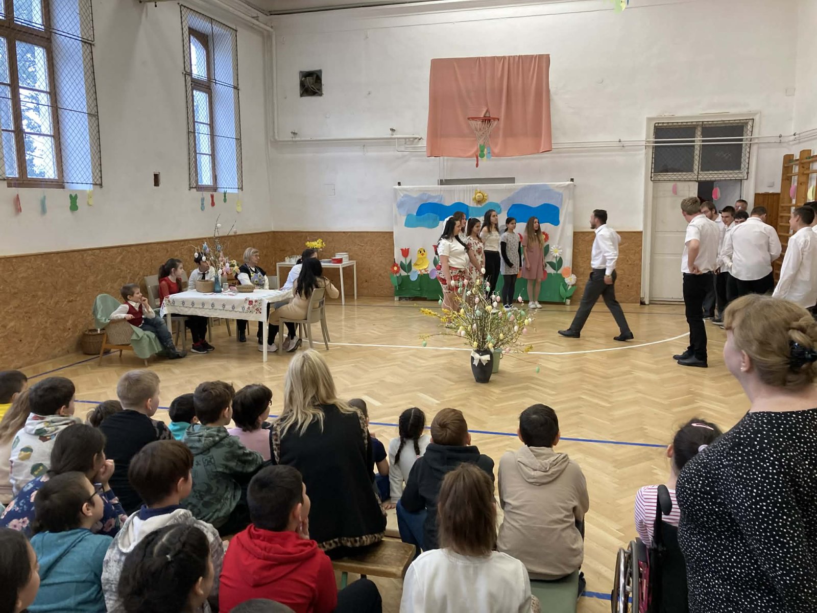 A program során a diákok előadásában elevenedtek meg az egykori húsvéti hagyományok. A jelenetek a virágvasárnapi barkaszenteléstől a tojásfestésen át egészen a locsolkodásig vezették végig a nézőket, miközben egy családi ünnep hangulatát is felidézték.